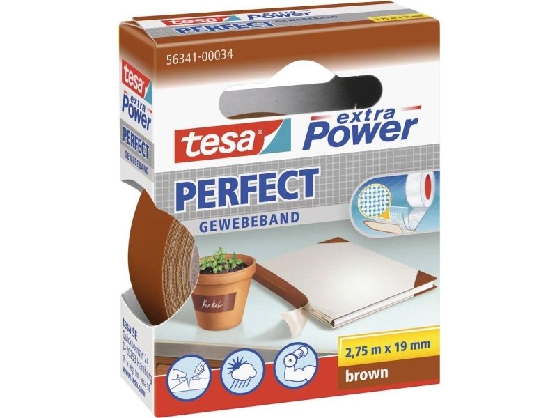 Tesa extra Power Perfect - Tygtejp - 19 mm x 2.75 m - brun