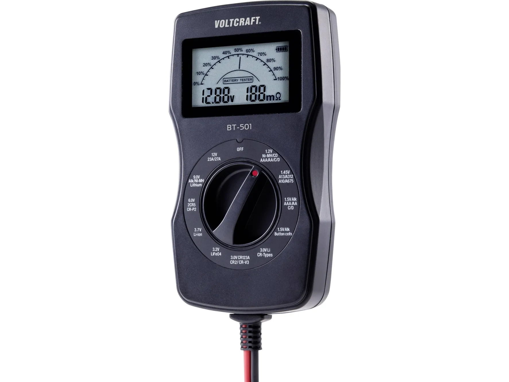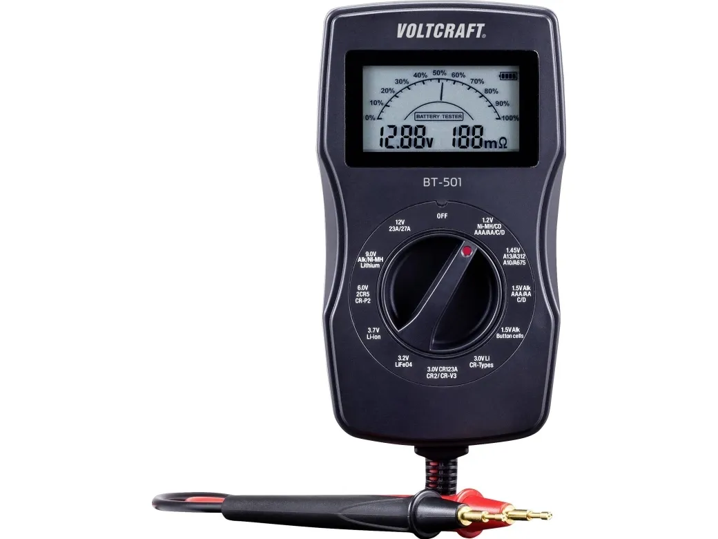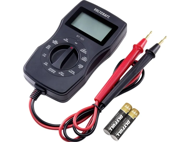 BT-501 erbjuder användaren många testalternativ för alla vanliga batterityper. Batterispänningen kan kontrolleras exakt med två decimaler. Enkel hantering och en kompakt design gör enheten idealisk för alla tillämpningar.