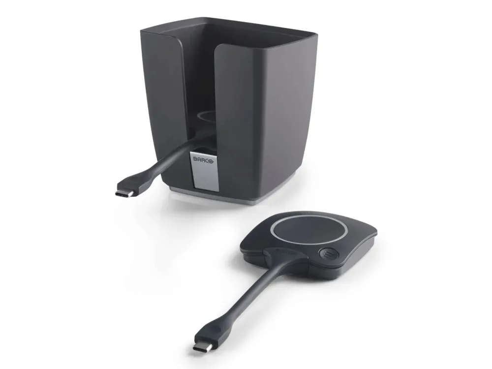Great things happen when people click. When collaborating with colleagues, partners or customers, you often need more than one ClickShare Conferencing Button to share content in the meeting room. Having multiple ClickShare Conferencing Buttons present is a must. Creating clutterfree and clean workplaces at the same time is a nice extra. That is why Barco has launched this package including the ClickShare Tray and two Conferencing Buttons.