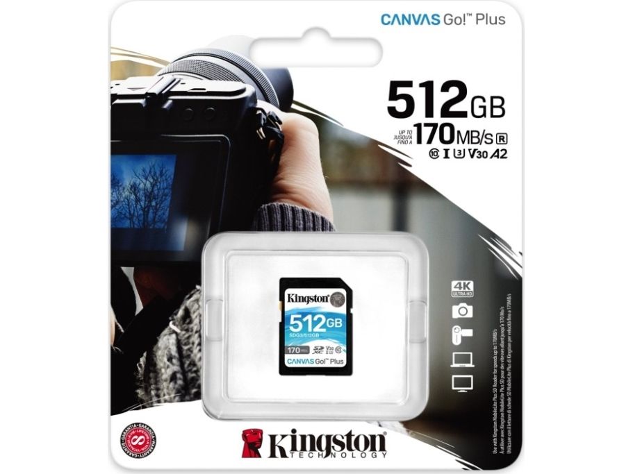 Kingston's Canvas Go! Plus SD is for the adventurers who are always on the go chasing the perfect moment to capture. With superior transfer speeds, the Canvas Go! Plus SD card accelerates your workflow and efficiency so that you'll have more time to take your creativity onto the next adventure. With U3 and V30 speed performance, shoot stunning 4K Ultra HD videos without worrying about slow speeds and dropped frames or shoot sequential burst-mode photography that's seamless and consistent. View the world as your canvas and take your creativity and inspiration on the road with the Canvas Go! Plus SD.