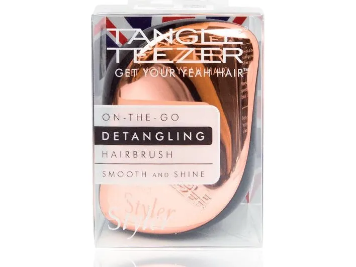 Our travel-friendly detangling hairbrush, the Tangle Teezer Compact Styler smooths, shines and defines on-the-go. Ideal for regular hair types, it tames stray strands and detangles wet or dry hair with its two-tiered regular-flex teeth which glide through the hair without pulling and are protected by a click-on cover.