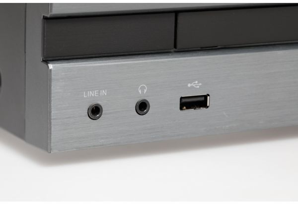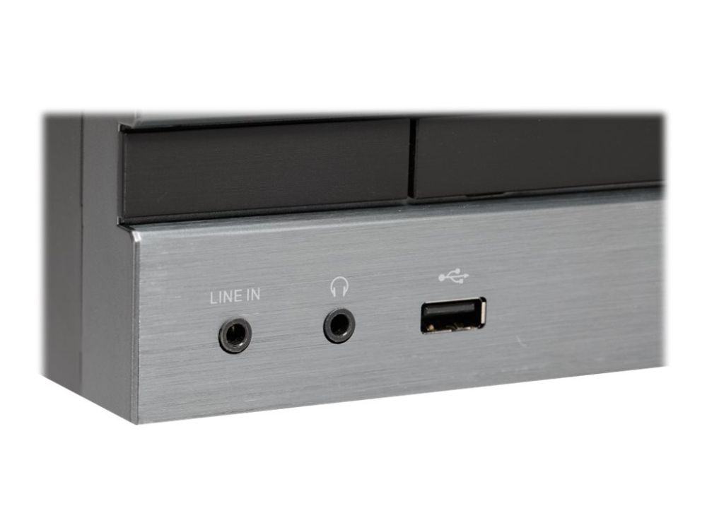 Linjeingång för ljud (minihörlurskontakt, stereo 3,5 mm) - fram USB 2.0 (4 pin USB typ A) - fram Hörlurar (minihörlurskontakt, stereo 3,5 mm) - fram