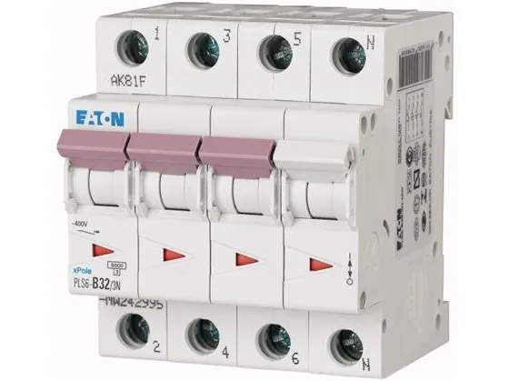 EATON Automatisk säkring, 4-polig, 32A, B-karaktär, 6 kA, 400 V, bredd 4 moduler