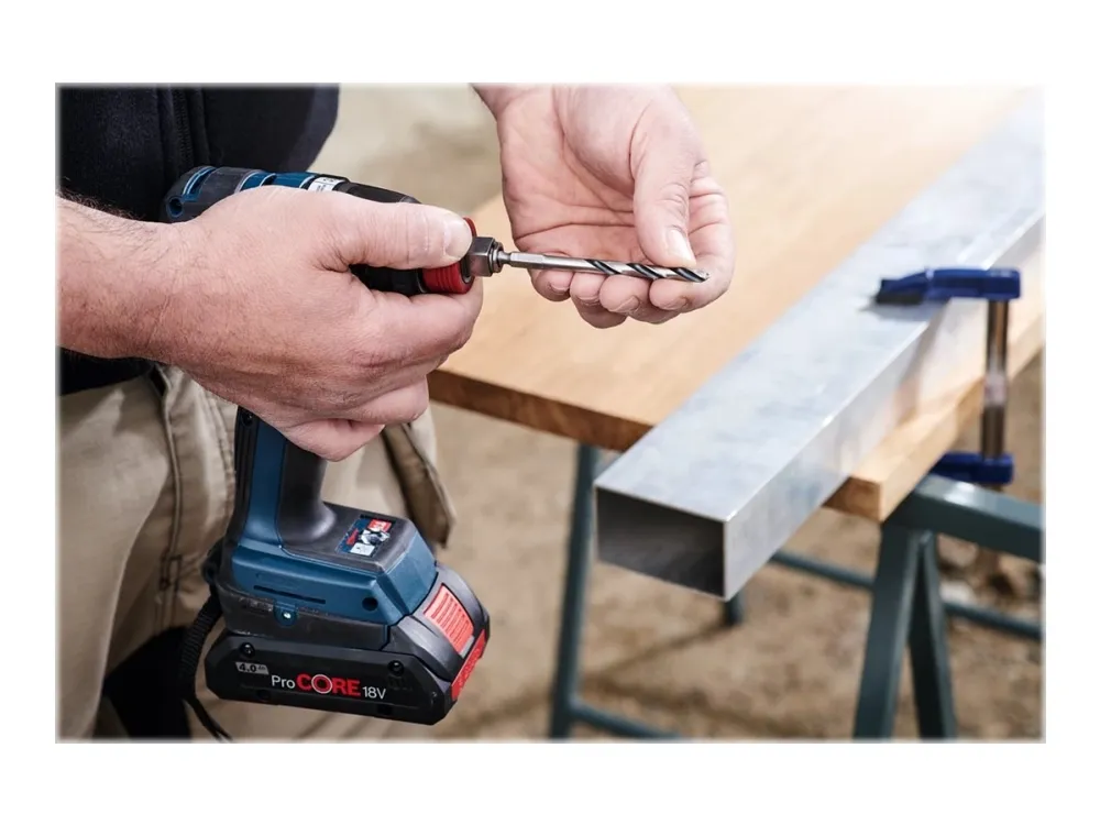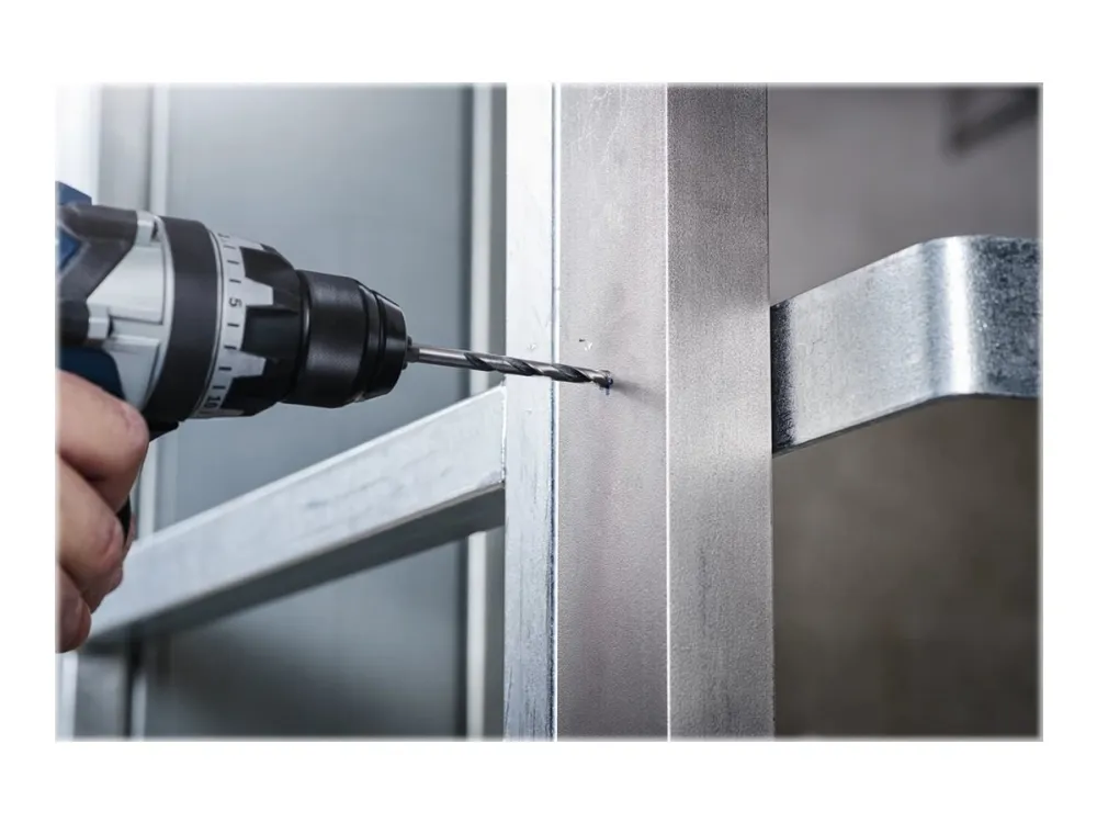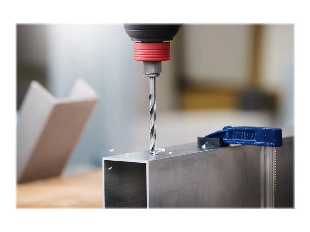 The HSS Twist Drill Bit PointTeQ enables fast drilling in metal due to its PointTeQ tip design. Quick and easy drilling starts are possible as the self-centering tip prevents wandering. Because of its increased drilling rate, less heat and wear are generated. The PointTeQ tip design remains sharp and ensures continuous durability. This bit is suitable for drilling clearance and pilot holes in alloyed and non-alloyed steel, non-ferrous metals, cast steel, cast iron and plastics. It has a cylindrical shank system (shank equal to drill bit diameter) and is intended for use in drill stands and drill drivers.