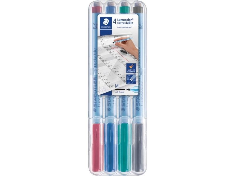 Marker Staedtler Lumocolor Correctable M Non-P 1,0 mm - med 4 stk. ass. farver