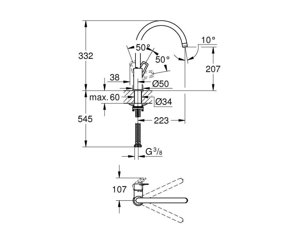GROHE BauLoop köksblandare m svängpip krom