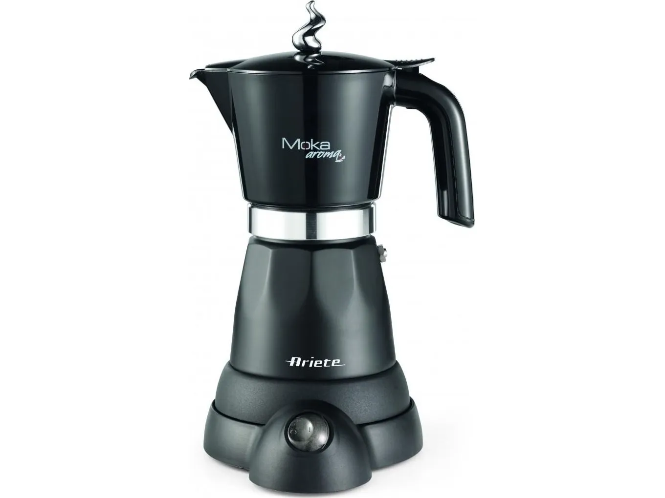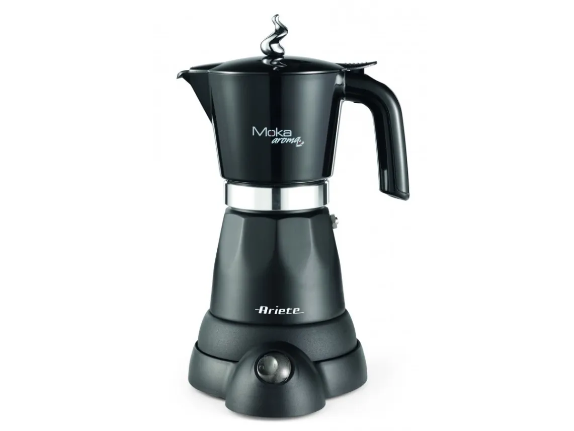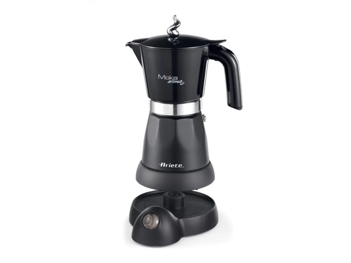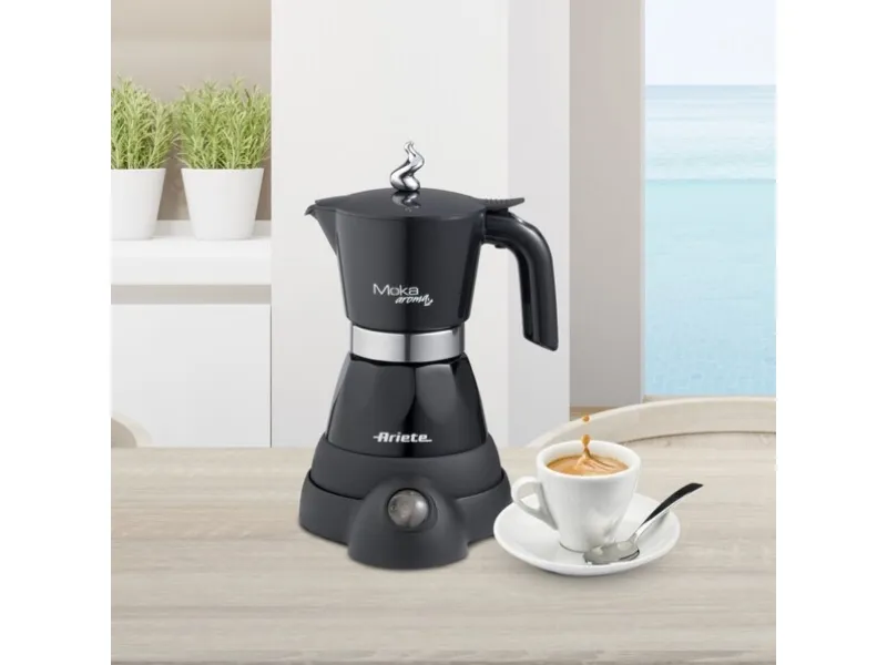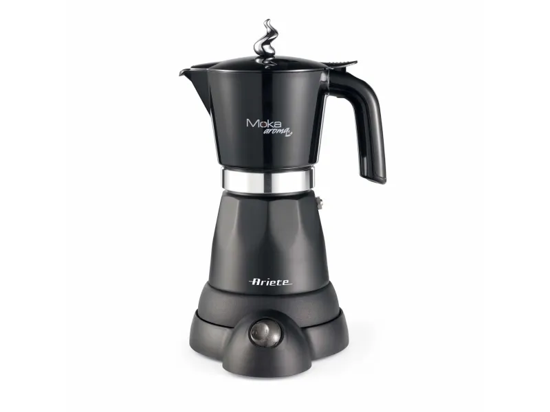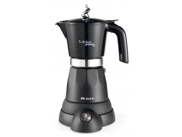 6 cup electric Moka pot with 4 cup adaptor in an attractive design. Equipped with an independent base, the Moka Aroma is cordless with a 360° support base. Once it has finished dispensing, the Moka pot switches to stand by mode and the coffee is kept warm for 30 minutes.The art of Italian tradition: home brewed coffee prepared using the classic little coffee machine remains one of the pleasures most appreciated and sought after by Italians.More economical: using Moka blends is less costly than buying portioned coffee like capsule or pods.Max capacity: you can serve 6 cups at once thanks to the coffee pot’s ample capacity; the coffee is quickly ready for the whole family.The advantages of a Moka pot: economical, makes excellent coffee and is also environmentally friendly; the coffee residues are entirely organic and have no negative impact on the environment.Ariete 1368 Moka Aroma, Electric Moka Pot, 4/6 cups, 480 W, Auto Shut Off, Maintains Temperature at 30 degrees, Black. Product type: Electric moka pot, Coffee maker type: Manual, Coffee input type: Ground coffee, Reservoir for brewed coffee: Jug, Capacity in cups: 6 cups. Power: 480 W. Product colour: Black