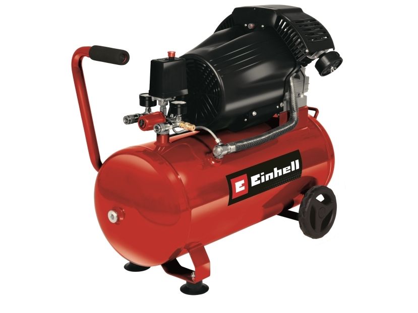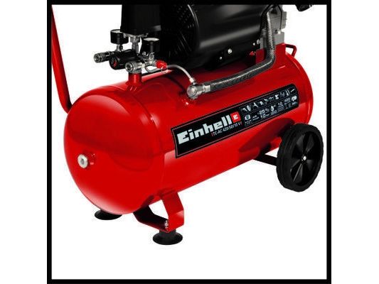 Oljesmörjning ger lång livslängd Inspektionsfönster för kontroll av oljenivå Tanken på 50 liter ger massor av luftkapacitet Arbetstrycket kan ställas in på upp till 10 bar med hjälp av tryckregulatorn Stora, lättavlästa manometrar Manometer och snabbkoppling till kontrollerat tryck Manometer och snabbkoppling till okontrollerat tryck Enkel transport med stora hjul och handtag God stabilitet med vibrationsdämpande fötter Avtappningsskruven ger mer användarvänligt underhåll 10 års garanti mot sönderfrätning av tanken Envägsventil, säkerhetsventil Strömförsörjning: 230 V | 50 Hz Effekt: 2 200 W?Varvtal: 2 850 v/min Sugkapacitet: 420 l/min Luftmängd vid 0 bar: 245 l/min Luftmängd vid 4 bar: 200 l/min Luftmängd vid 7 bar: 150 l/min Max drifttryck: 10 bar Antal cylindrar: 2 Tankvolym: 50 l Denna kompressor med en tank på 50 liter ger dig möjlighet att använda en lång rad tryckluftsverktyg i garaget, verkstaden och hemmet. Med kompressorns många smarta funktioner och egenskaper lämpar den sig för många syften.