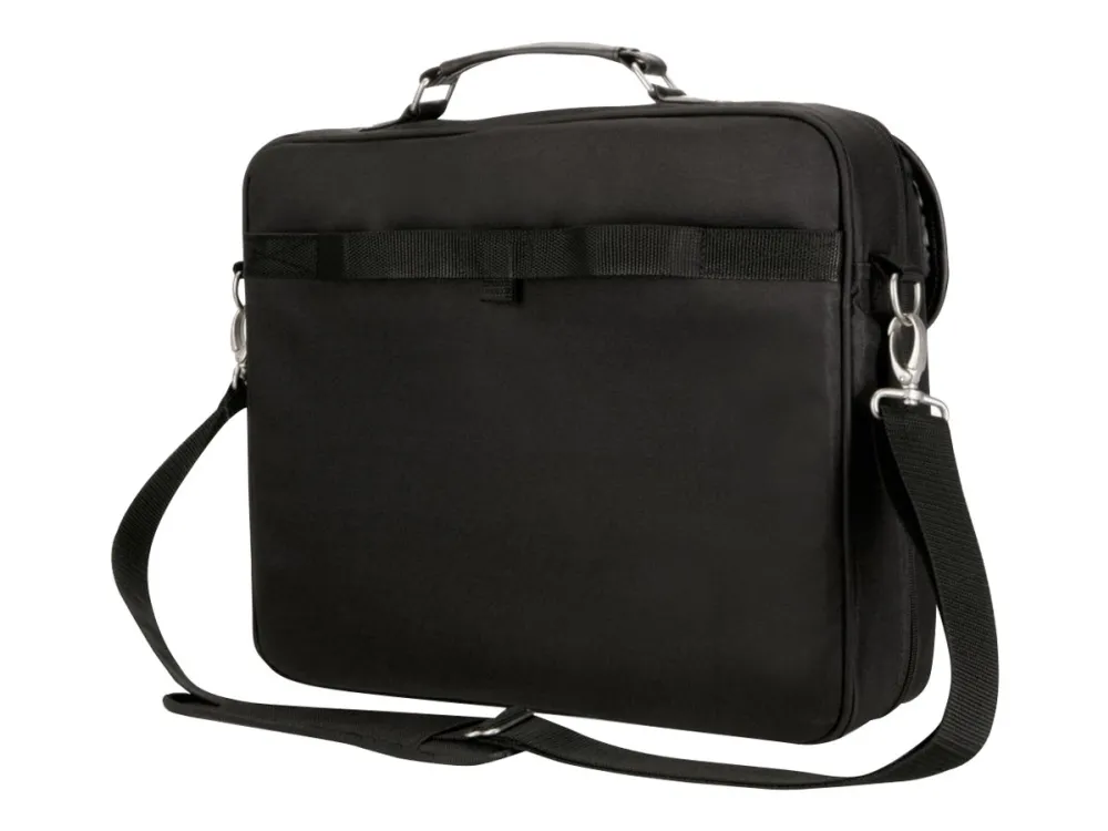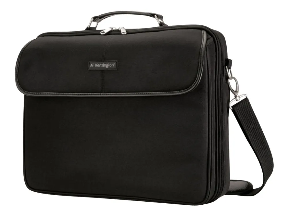 A classic yet functional laptop case, the Kensington SP30 Case, has a storage space for all your important items. The padded laptop compartment protects your laptop while the front flap pocket offers quick access to the items you need most. It even attaches to your roller bag for easy airport travel.