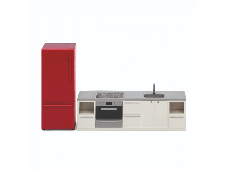 Köket brukar kallas hemmets hjärta, så även i Lundbydockhuset. I detta köksset har dockorna allt de behöver för härliga middagar tillsammans. I köksön finns spis, ugn, diskbänk och vask samt öppna fack för smart förvaring. Kylskåpet går att öppna. Med Lundby Basic kan du snabbt och lätt möblera ditt Lundby dockhus. Uppfyller kraven i leksaksstandarden EN71 och gällande kemiska regelverk REACH och SVHC.