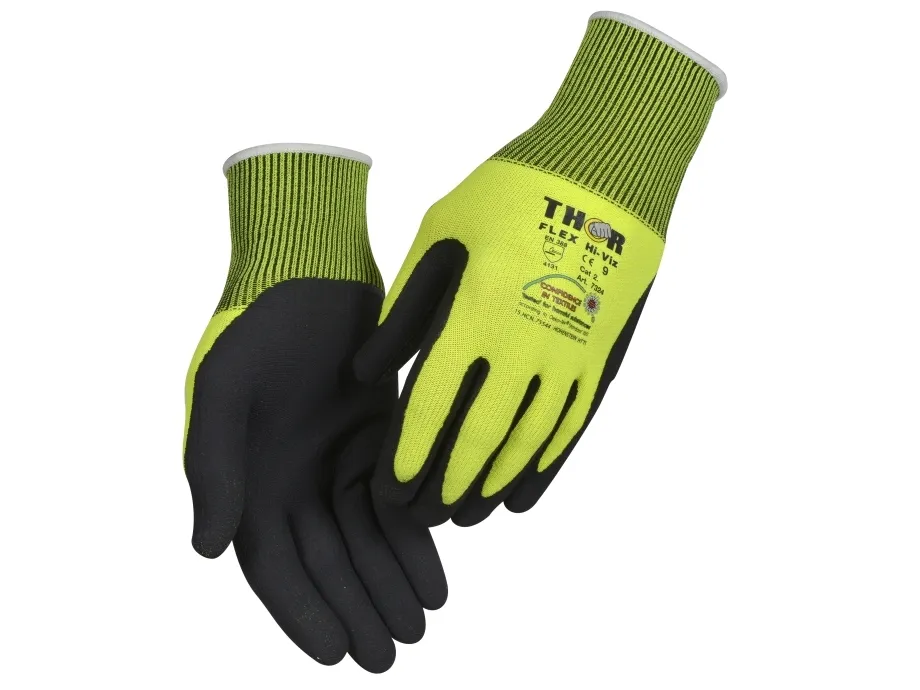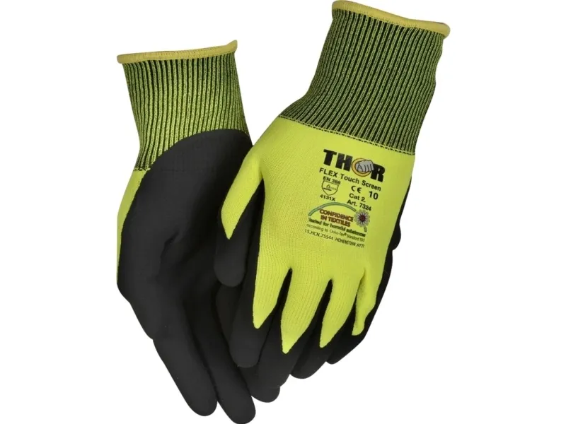 Fingerdyppad nitrilhandske, THOR Flex Touch Screen, 8, svart, nitril/polyester, med gul ribbad kant - (12 st)