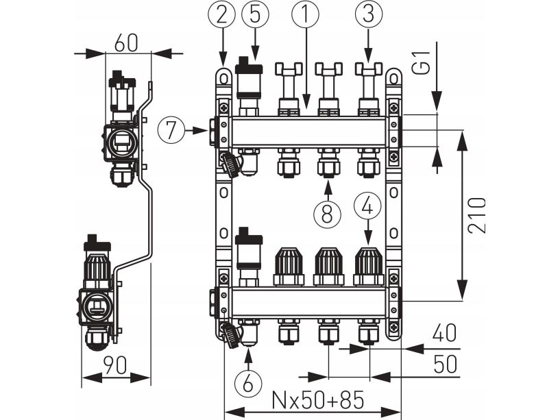 Ferro fördelningsenhet stålfördelning 9-vägs termostat och fram/retur standard Ferro // TG.F.ROZ.SN-RZP09S