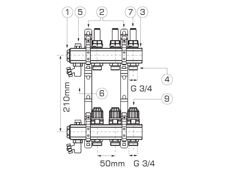 Ferro fördelare typ RZP1 8-vägs termostatisk ventil flödesmätare (RZP08S)