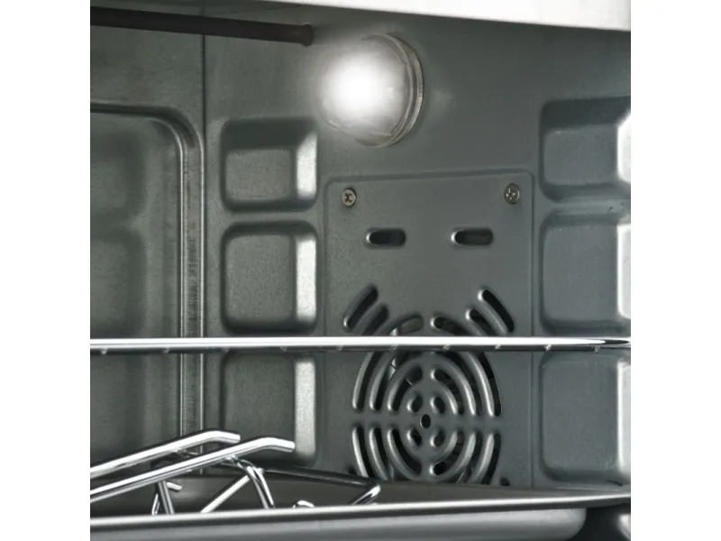 The FE42 oven is perfect for cooking two courses simultaneously and in a very short time: a side dish for 6 people together with a good fish, or toast the bread and cook the pizza, thanks to the generous storage of 42 litres combined with 2000 watt power. Equipped with heat ventilation function that provides the ability to cook evenly and quickly any kind of dish, this unit features a 60-minute timer, internal light to always keep an eye on your plates and adjustable thermostat from 100 to 230° C, while cooking mode can be set in standard, grill option to make crispy and roasting the top of the dishes and combined.