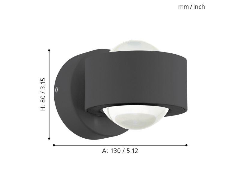 EGLO Ono 2, Ytmonterad, 3000 K, IP20, Antracit, Transparent