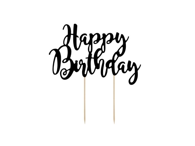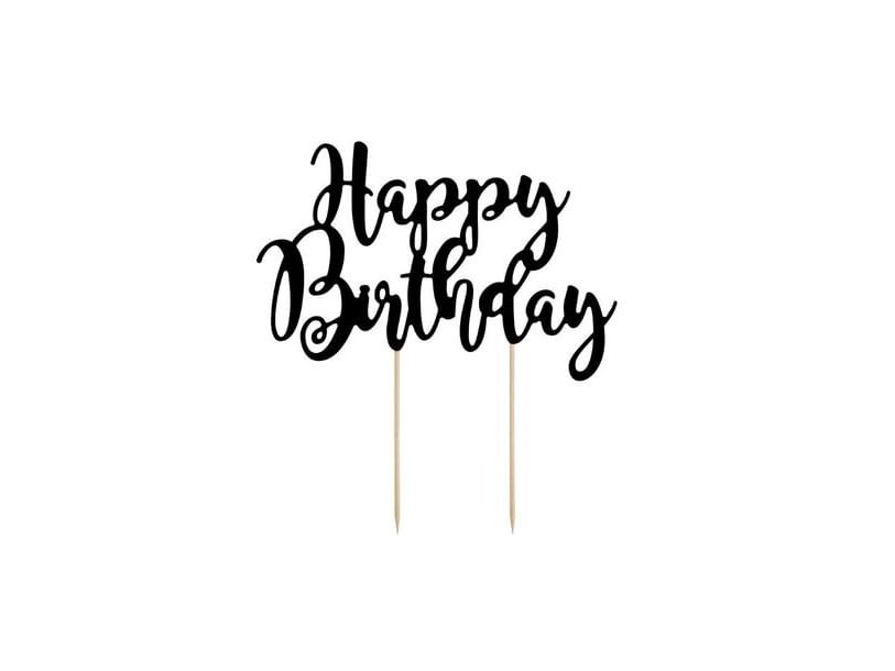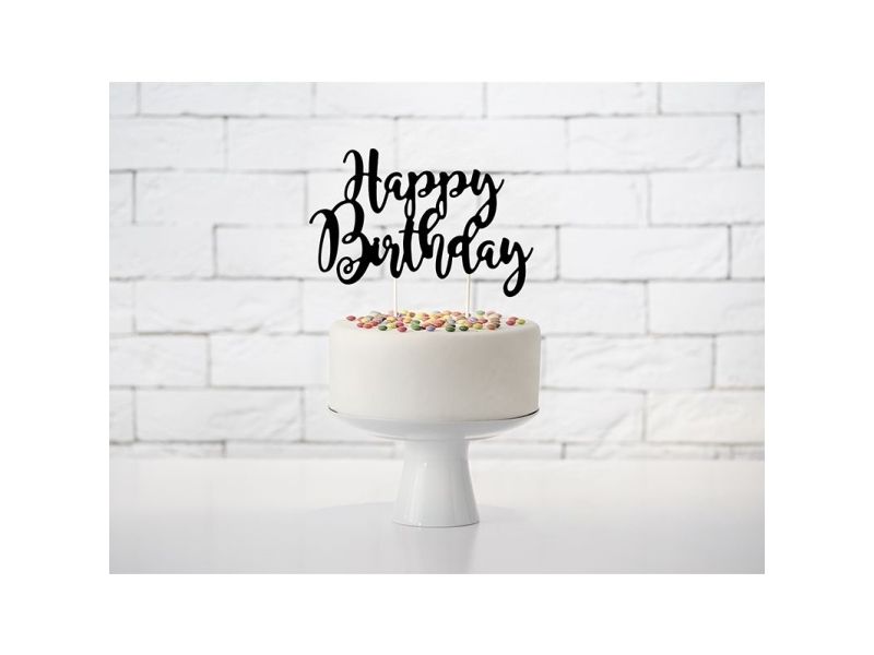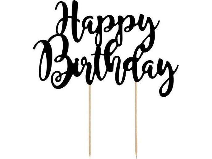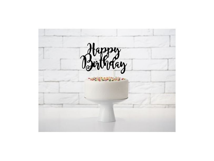 Happy Birthday tårtdekoration svart, 22,5 cm