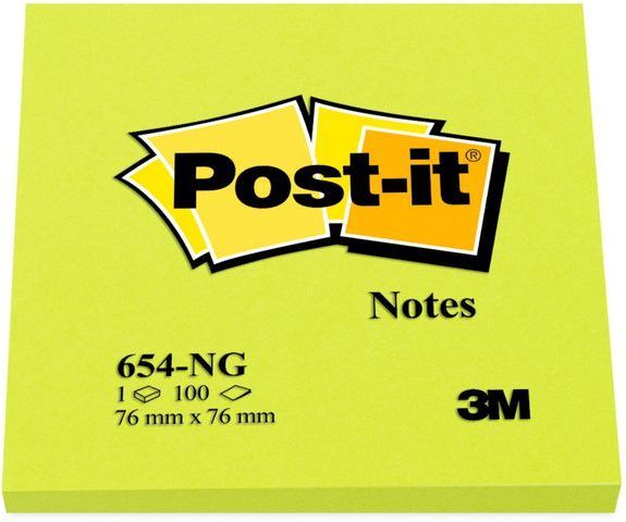 Post-it block neon grön 654N 76x76 mm starkgrön 100 ark (3M0306)