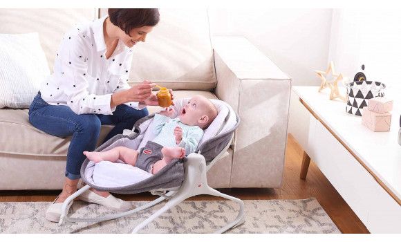 From playing to napping with one click! Uniquely designed grey rocker that easily converts into soothing, cozy napper.
