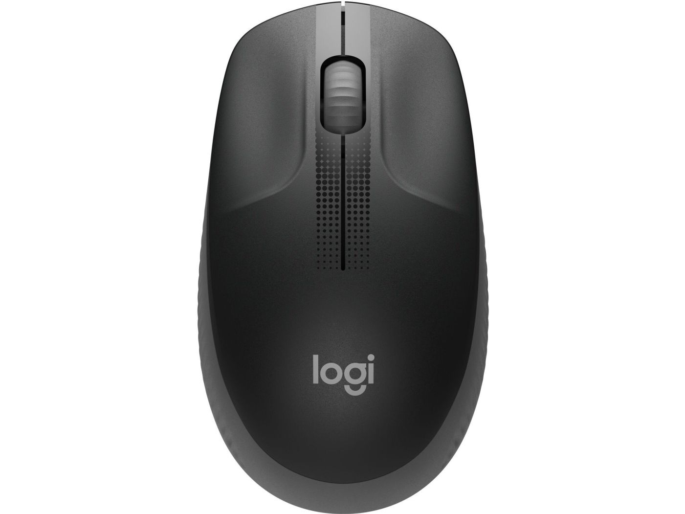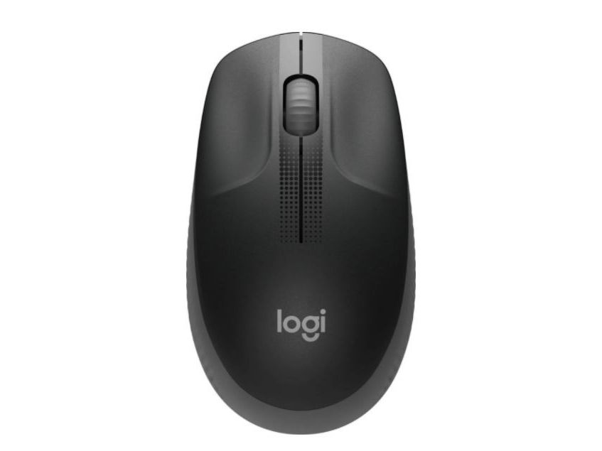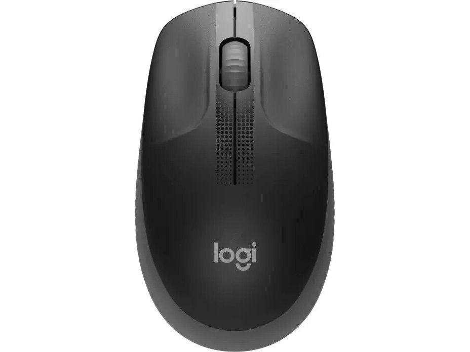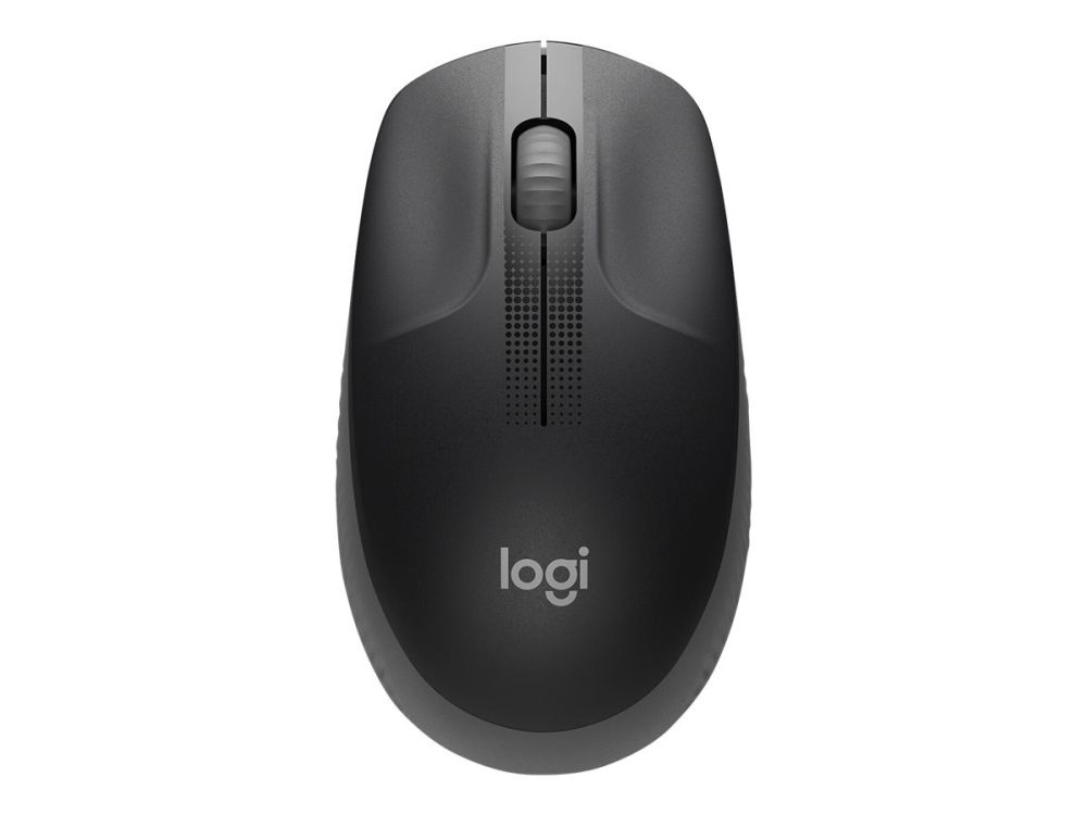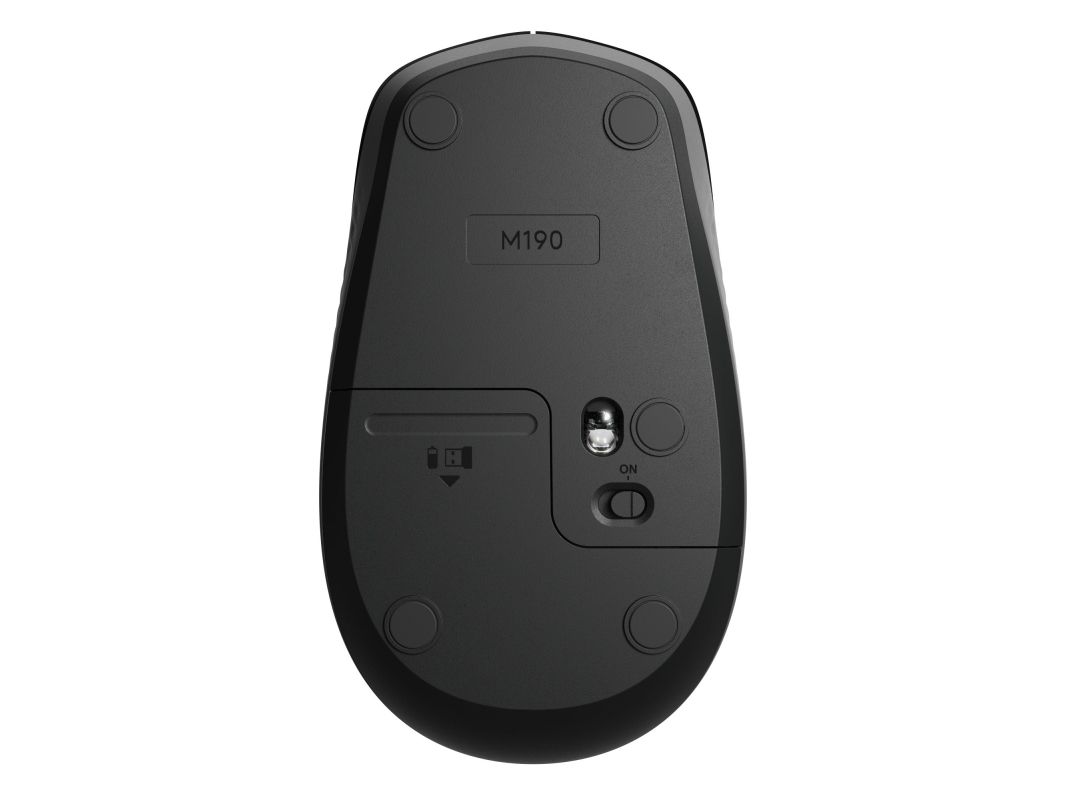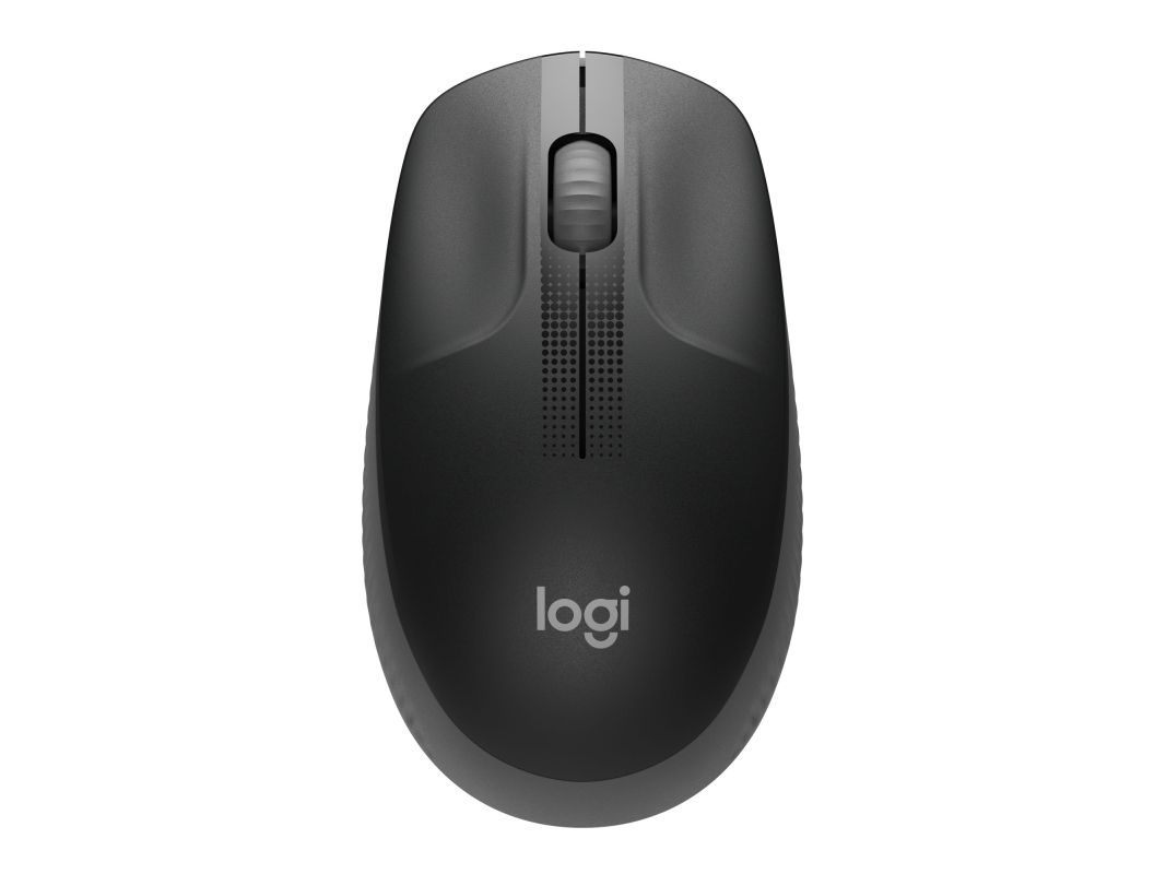 Logitech M190 is a full-size wireless mouse with a comfortable contoured design that follows the natural curve of medium to large hands.