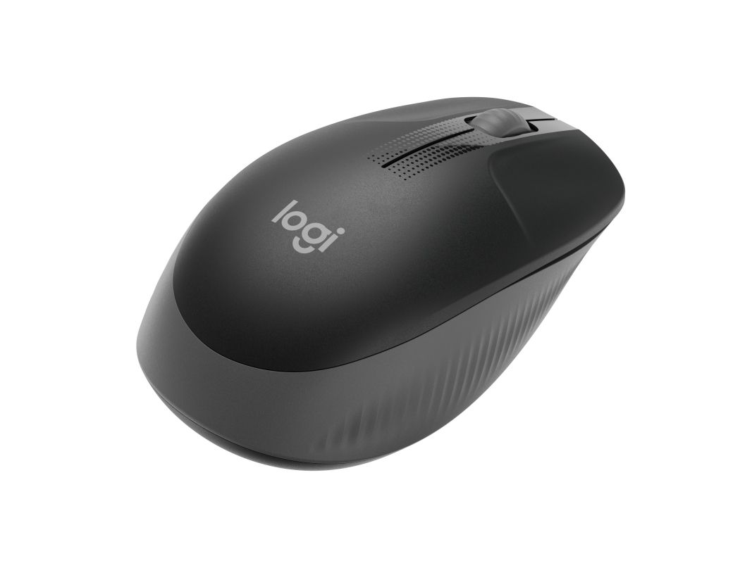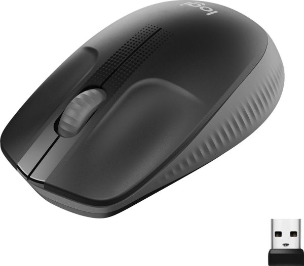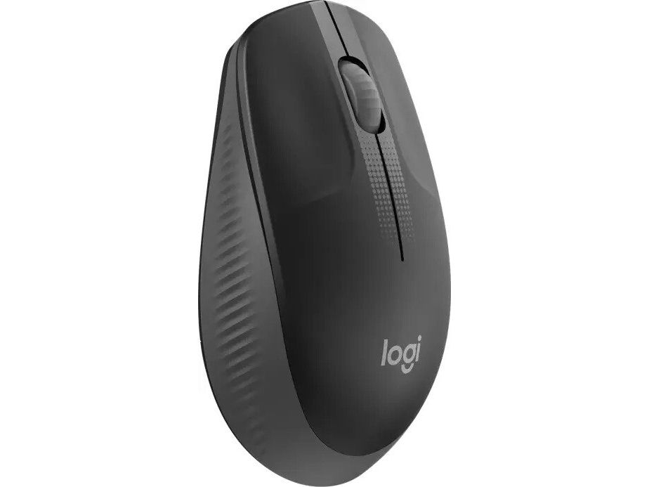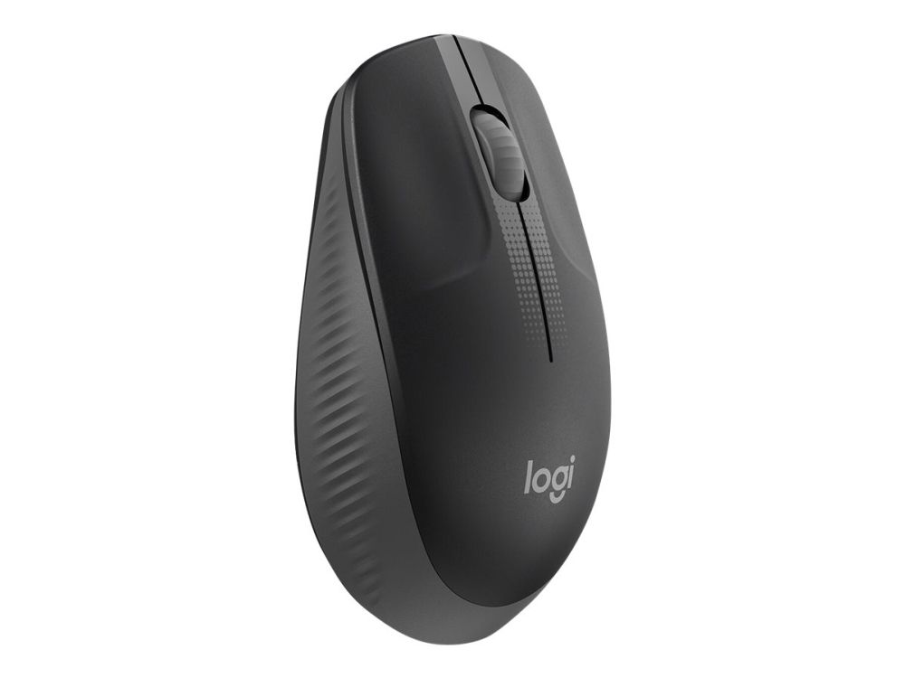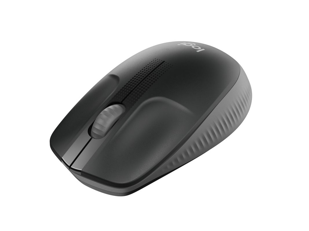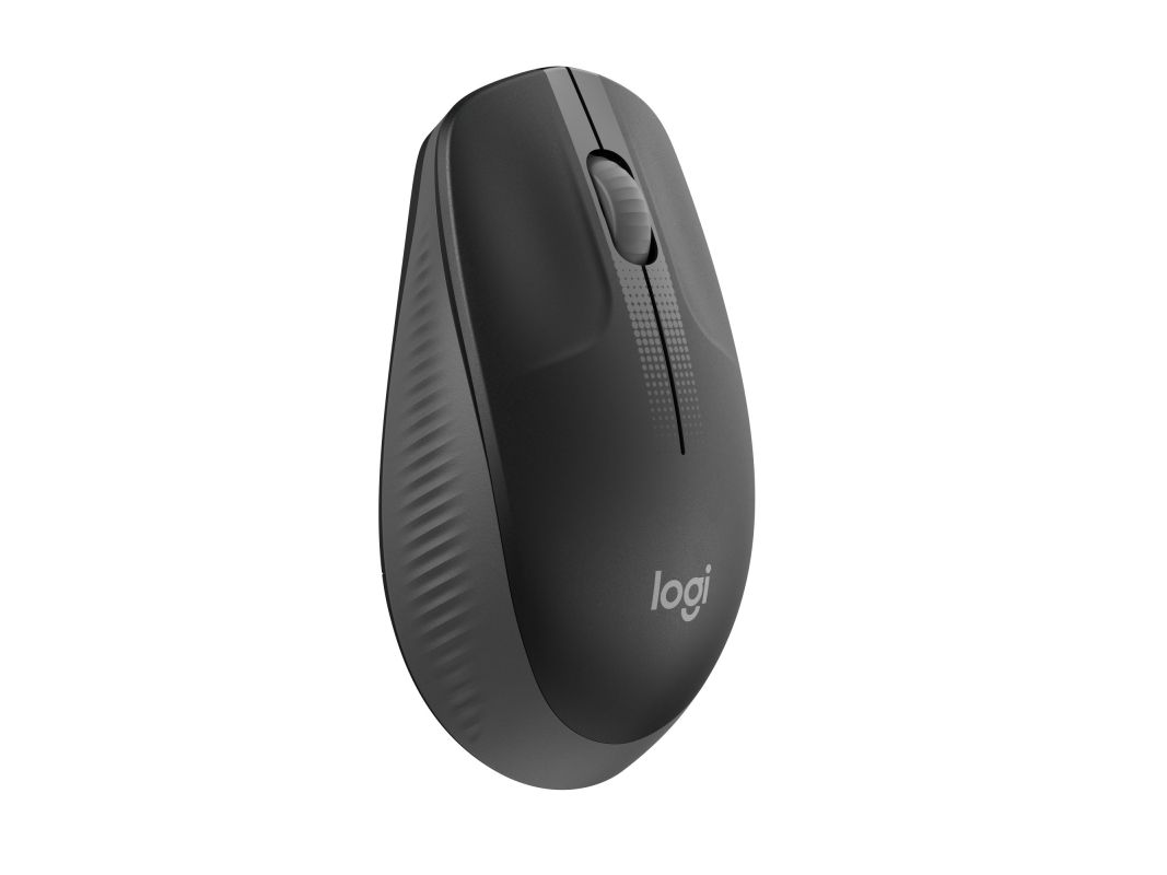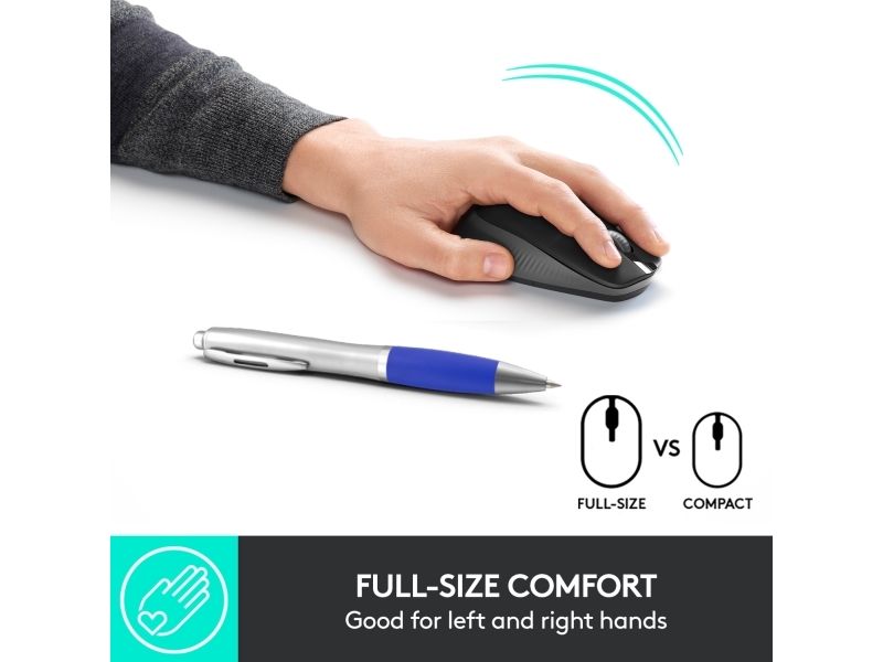 Logitech M190 is a full-size wireless mouse with a comfortable contoured design that follows the natural curve of medium to large hands.