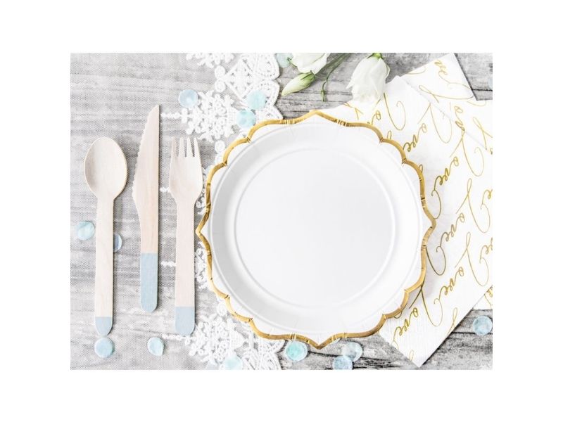 Party Deco Paper plates, white with golden edges, 18 cm, 6 pcs universal