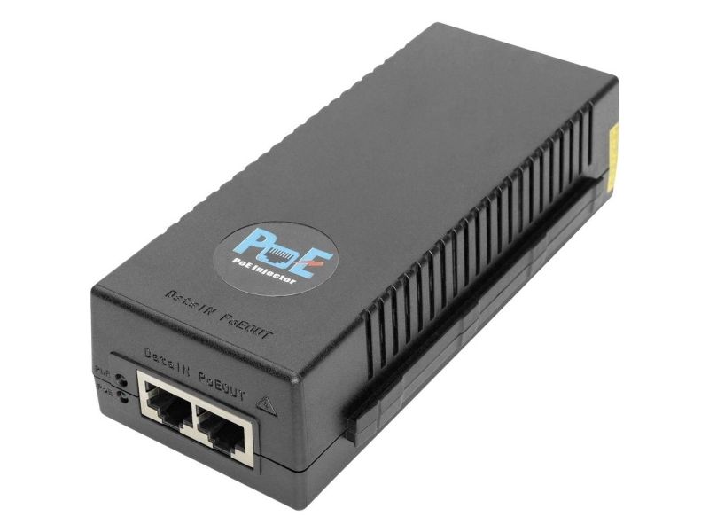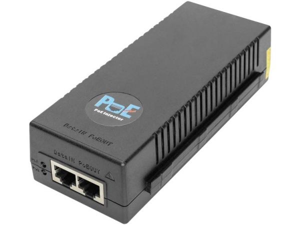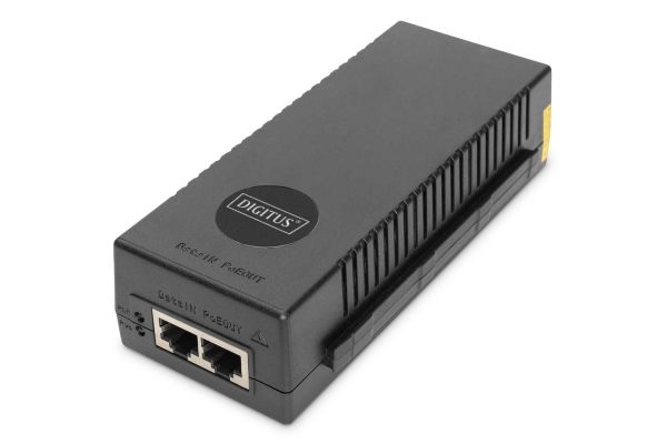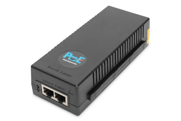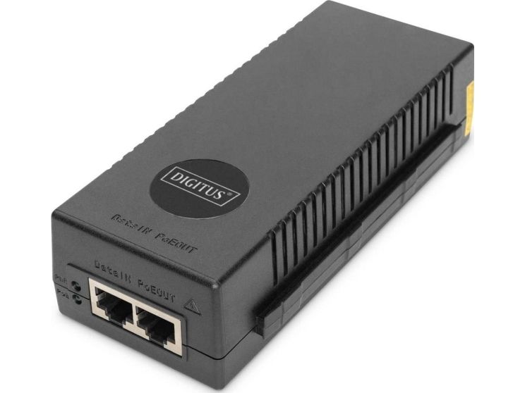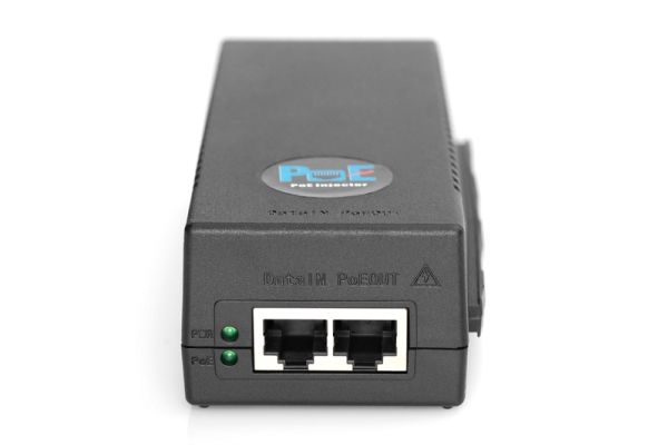 The PoE+ injector from DIGITUS offers a 30 watt PoE port as a midspan solution. Compact, cost-effective and fully IEEE802.3at-compliant. With support for 10 Gbps network connections, the PoE injector can also be used in environments where the highest possible data transfer speed is essential. The simple solution for remote power supply of wireless access points, IP security camera, VoIP phones and other installations with PoE functionality. The injector makes an external power supply for your devices unnecessary, eliminating the connected power cables / plugs. PoE & PoE+ compatible devices can be supplied with power and data using the network cable, a secure and reliable solution for expanding the existing network infrastructure.