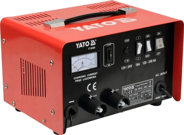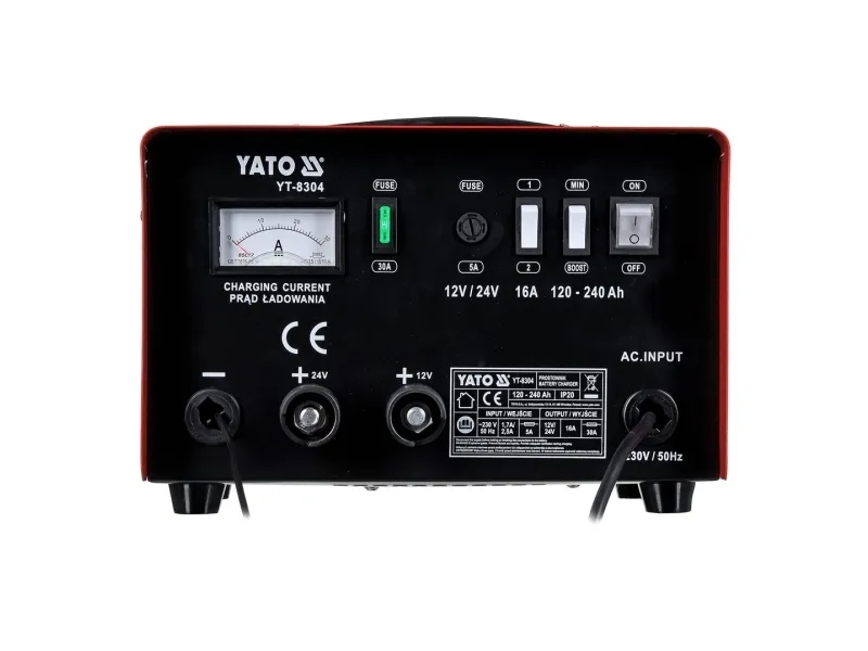 Yato YT-8304. Charging voltage: 12 - 24 V, AC input voltage: 230 V, AC input frequency: 50 Hz. Weight: 11.6 kg