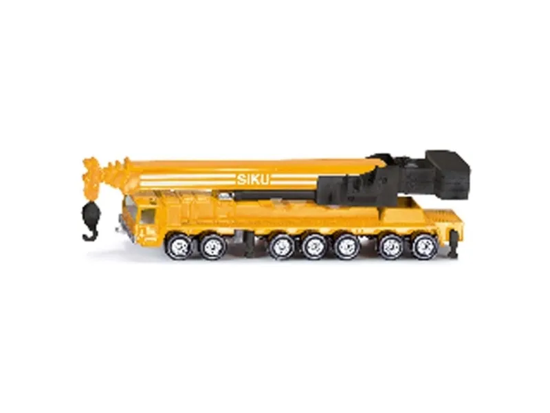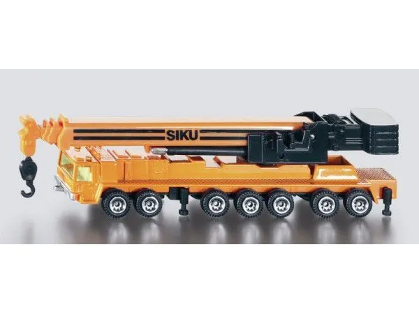 Detailed toy model of a Mega Lifter for play and collecting. Robust and stable metal frame, Excellent mobility thanks to tyres made of high-quality plastic, Telescopic crane arm, Extendable outriggers. Perfect addition to other siku products. Material: metal/plastic, Dimensions: 14.7 x 3 x 24.1 cm.