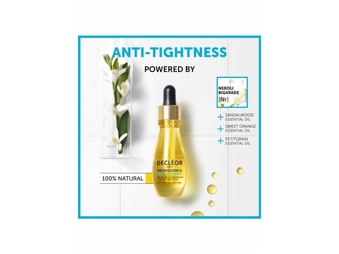 Neroli Bigarade Aromessence Essential Oils-Serum is Decléor's 100% natural face serum to durably moisturise your skin and reduce tugging sensations. Suitable for all skin types, especially dehydrated skin.