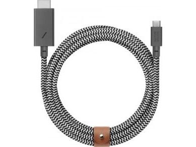 Display on demand. With a flexible 10-foot connection from your MacBook, iPad, or any other Type-C device to your TV, Belt HDMI lets you go from work to play effortlessly. Simply plug and play to enjoy immersive video with up to 4K HD display on devices supporting HDMI 2.0 at 60Hz. Retaining all the functionality of our signature Belt charging cables, our HDMI cable features the same durability and genuine leather belt to stay tangle-free.