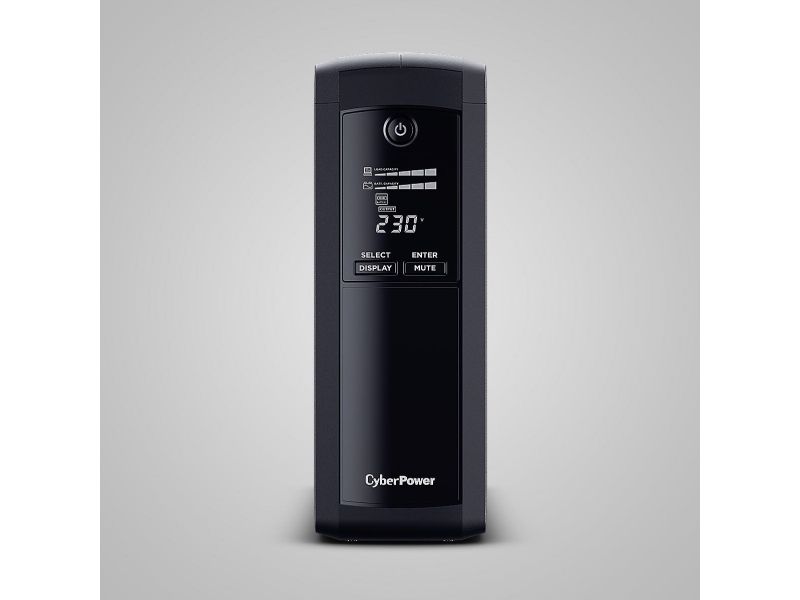 CyberPower Value Pro VP1600ELCD-FR ger tillförlitligt strömskydd med sina avancerade funktioner som är utformade för sömlös funktionalitet. Med en effektkapacitet på 1600 VA och upp till 11 minuters drifttid vid halv belastning ger denna interaktiva UPS en garanti för oavbruten strömförsörjning. Den medföljande LCD-displayen förenklar övervakningen, medan automatisk spänningsreglering (AVR) upprätthåller en stabil utspänning, vilket säkerställer att de anslutna enheterna är säkra från strömfluktuationer.
