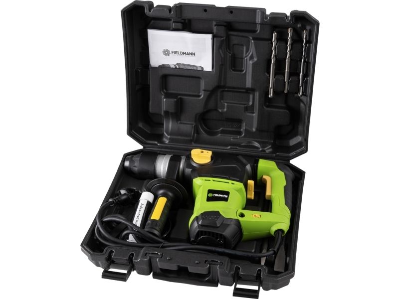- Voltage 220 V / 50 Hz - Input power 1,500 W - No load motor speed 0–880 rpm - 0 – 4,250 impacts / minimum 5.5 J - Maximum drilling of concrete: 32 mm, metal 13 mm, wood: 40 mm - No load motor speed 0–850 rpm - 3 drills and 2 chisels - SDS-PLUS system - Weight 4.9 kg - Plastic case - Weight 7kg