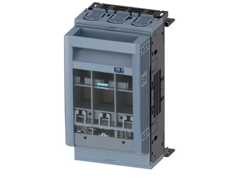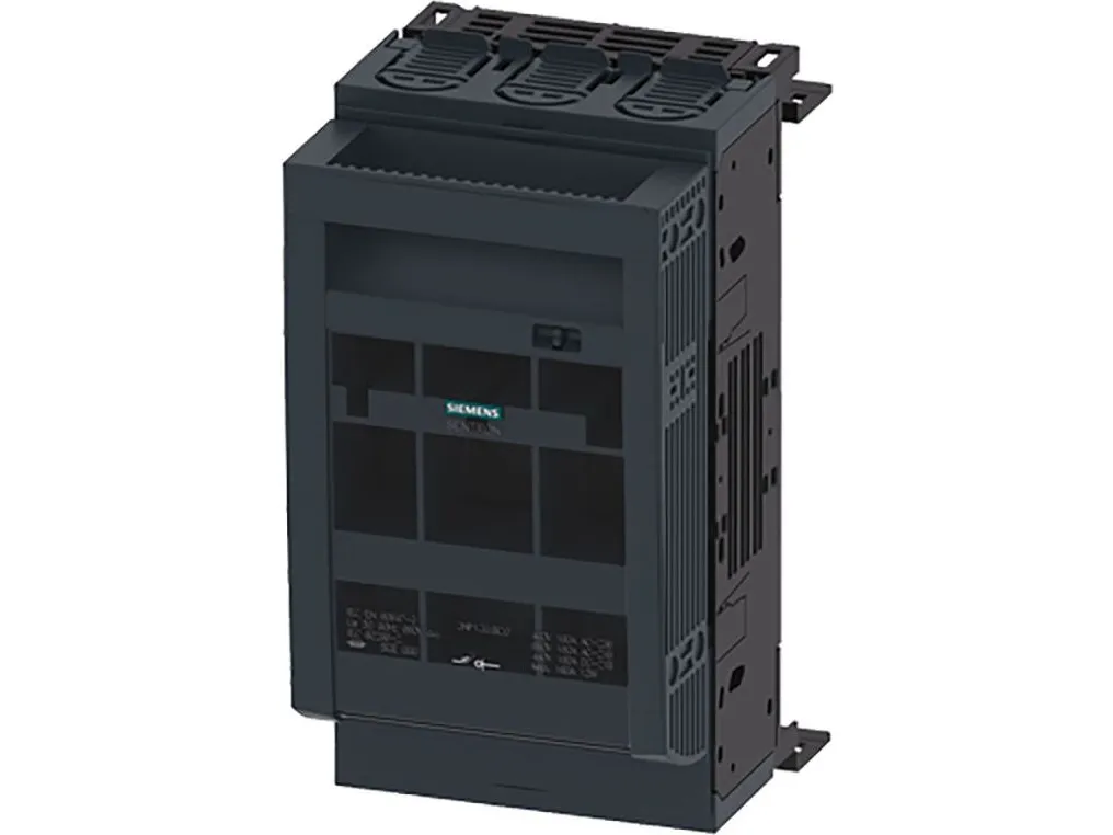 Sikringsbelastningskontakt 3NP1, 3-polet, NH00, 160 A, til ... SENTRON., sikkerhedbelastningsskillekontakt 3NP1, 3-polet, NH00, 160 A, Til samleskinnesystem 8US 60 mm, fladtilslutning, afdækningsplan 32/70 mm sikringsbelastningskontakt 3NP til 630 A med forbedret person- og anlægsbeskyttelse med komfortabel tilslutningsteknik. Sikringsbelastningskontakten beskytter anlæg i industrien eller infrastrukturen mod overbelastning og kortslutning og er egnet til anvendelse i flere sektorer. Den standardmæssigt medfølgende omslutnings- og berøringsbeskyttelse af den nye SENTRON.-serie 3NP1 forhindrer brugeren ved montering af kollektive skinnesystemer strømførende dele, selv ved adgang på bagsiden. Desuden kan brugeren nemt registrere de anvendte sikringer med den store rude. Siemens sikrings-lastskilleafbryderen 3NP udmærker sig især ved: 1. Meget fleksibel pga. modulopbygning og gennemgående tilbehør. 2. Egnet til fastgørelse på jorden, din-skinne og Siemens samleskinnesystemer 8US 3. Elektronisk sik
