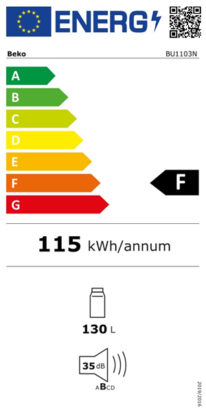 Beko BU1103N - Kylskåp - inbyggd - fördjupning - bredd: 60 cm - djup: 57.5 cm - höjd: 82 cm - 130 liter - Klass F - vit