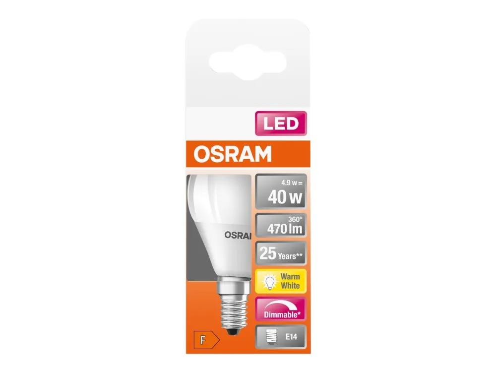 OSRAM LED SUPERSTAR - LED-glödlampa - form: P45 - glaserad finish - E14 - 4.9 W (motsvarande 40 W) - klass F - varmt vitt ljus - 2700 K