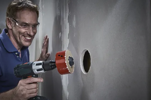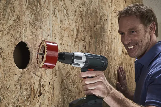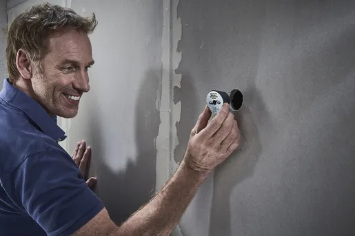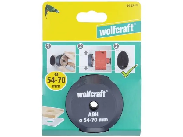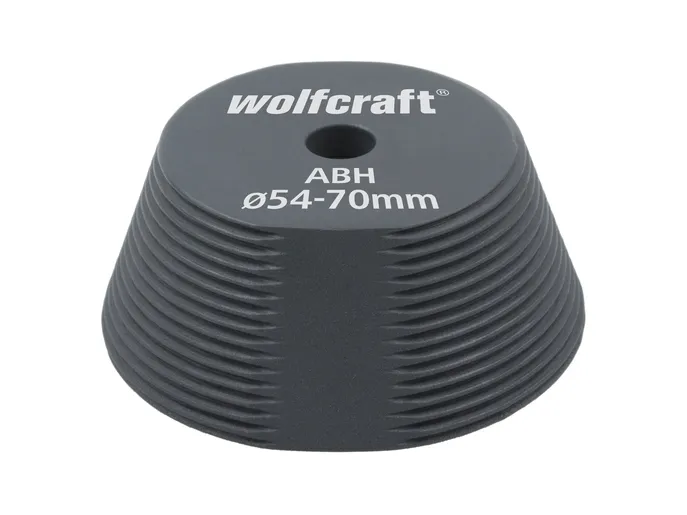 The hole enlarging tool from wolfcraft is the first safe standard solution for neat and centred enlarging of existing boreholes using a hole saw. The clever innovation consists of a high-quality, conical plastic cylinder that you screw into the existing borehole with ease using the integrated thread. In the centre of the hole enlarging tool is a steel bushing that receives the centring drill bit with Ø 6–8 mm, enabling it to guide the hole saw safely. The hole enlarging tool also guarantees centred alignment with the existing borehole. This enables you to maintain an even hole pattern when drilling series of holes, e.g. when upgrading halogen ceiling spots to a larger LED system. The insertion aid supplied lets you tighten the fit in the borehole once more so that the hole enlarging tool is securely fixed in the borehole. Simply position the hole saw, drill the hole and then remove the hole enlarging tool together with the drilling core. The hole enlarging tool also makes working overhead child's play.