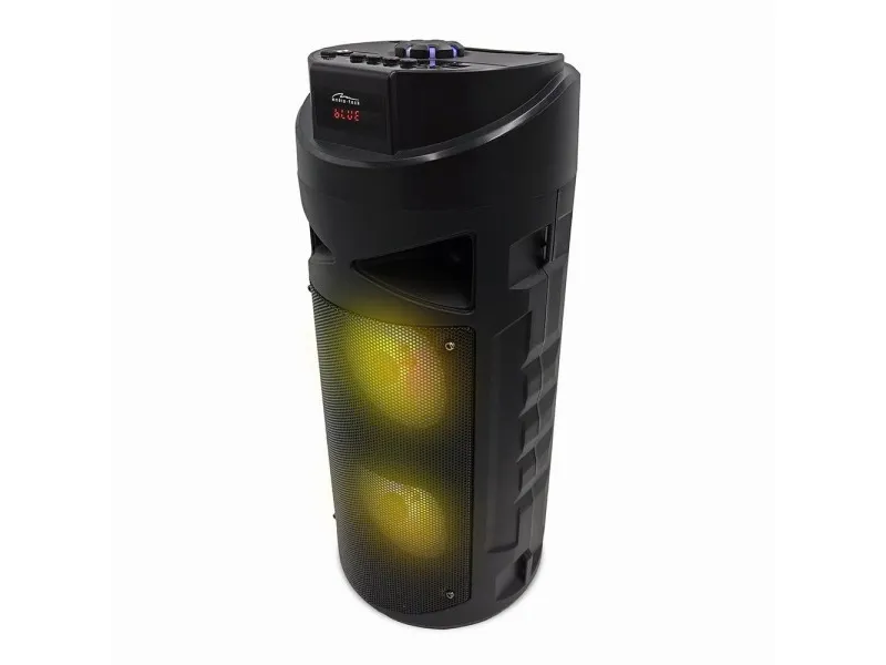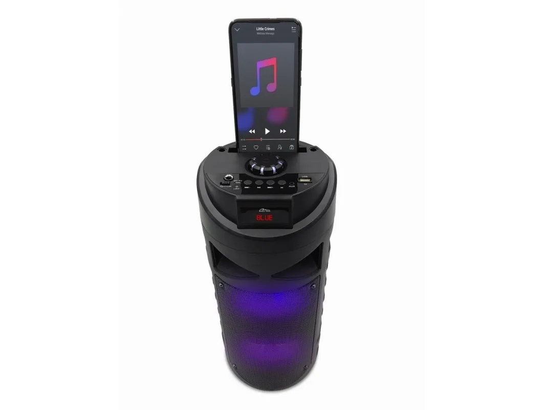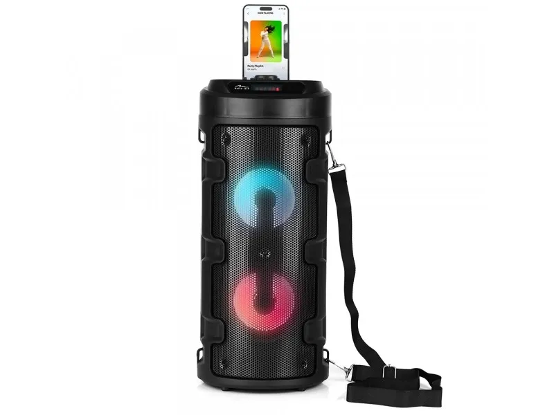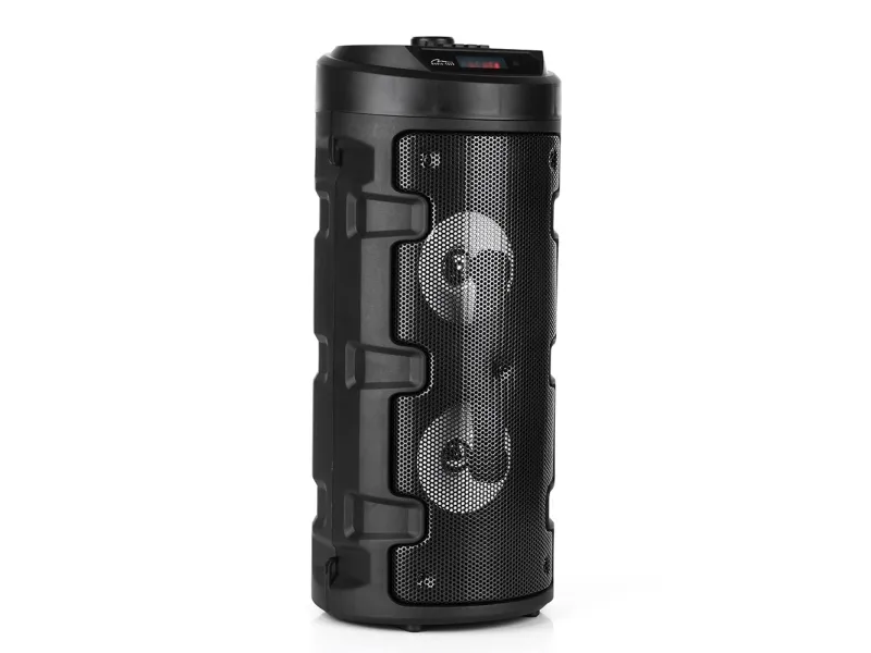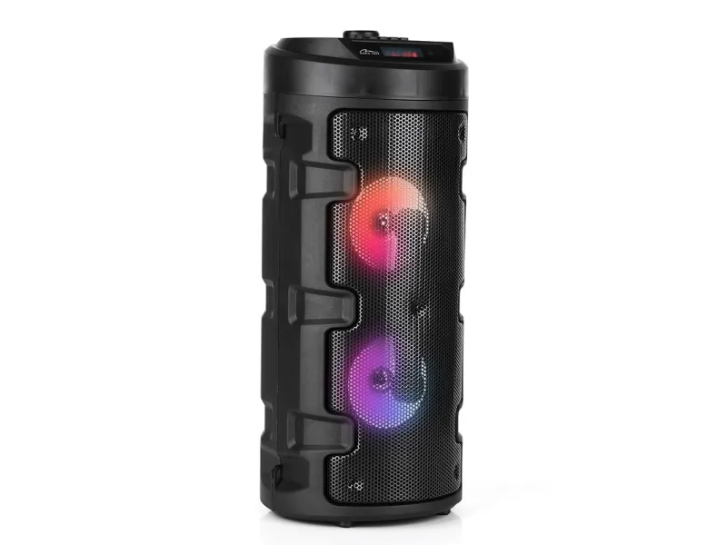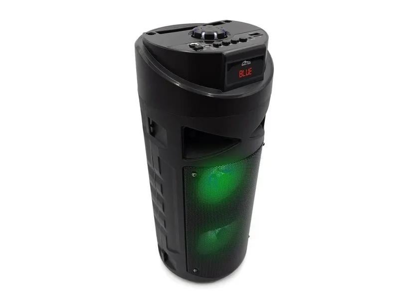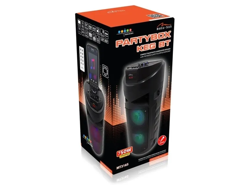 Högtalaren är utrustad med ett uppladdningsbart litiumjonbatteri, vilket gör att du kan njuta av musik utan att behöva oroa dig för eluttag. Det inbyggda bärhandtaget är bekvämt och gör det enkelt att ta med sig musiken vart du än går. Aktivera de flerfärgade LED-lamporna för en förbättrad atmosfär och njut av ytterligare funktioner som karaoke och en FM-radio för att hålla det roliga igång. Oavsett om du använder flashminneskort eller USB-host, erbjuder Media-Tech PARTYBOX KEG BT en uppslukande ljudupplevelse, lämplig för fester eller avslappnade sammankomster.