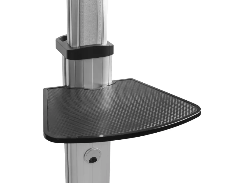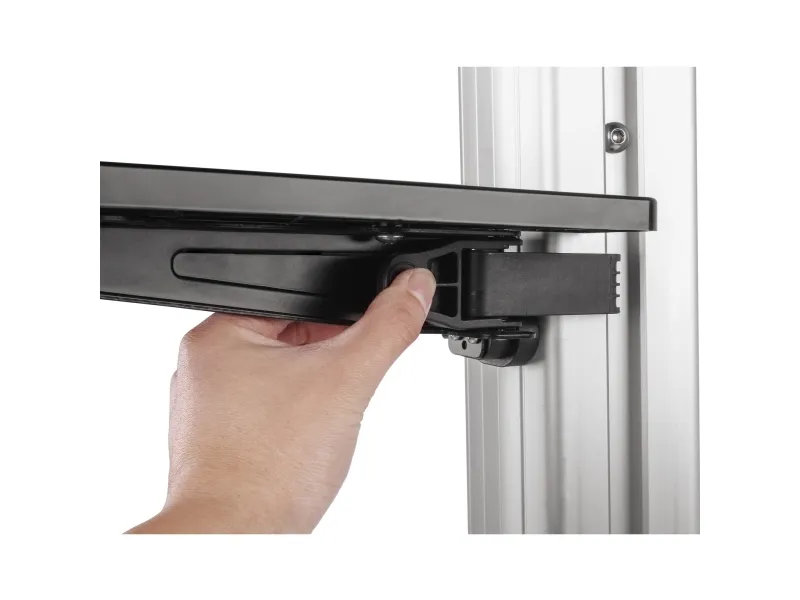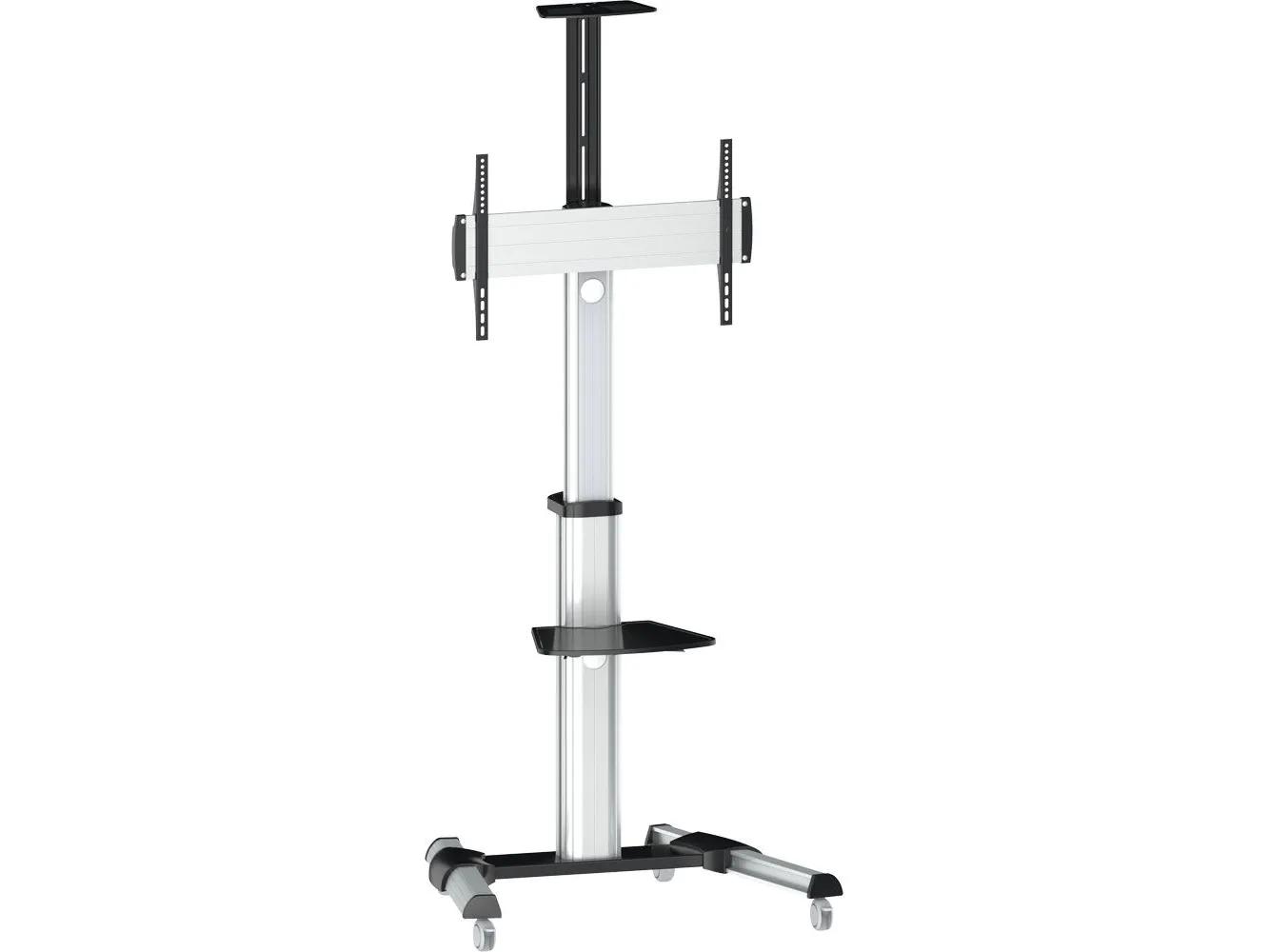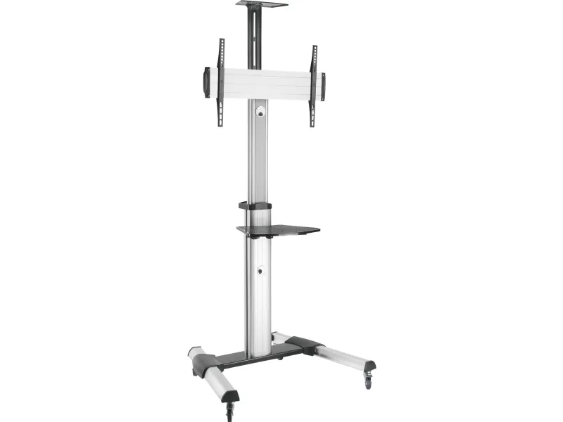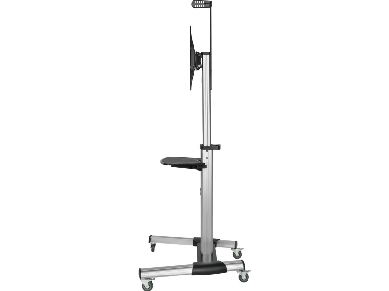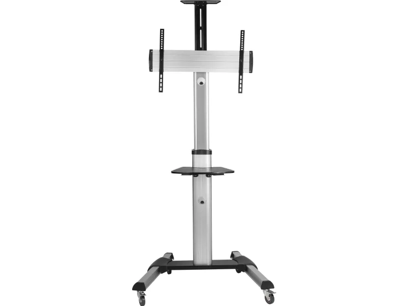 - Telescopic Height Adjustable TV Cart.\n- Panel height adjustment promotes a customized placement to match different viewing needs anytime.\n- Freely tilting mechanism allows easy angle adjustment and reduces glare from lights or windows to obtain the optimal viewing comfort.\n- Quick-release spring lock makes it easier and effortless to adjust pole height to a desired position.\n- Quick assembly shelf assures easy post-installation and height adjustment.\n- Internal cable management hides wires from view to keep a clutter-free appearance.\n- Sturdy base with heavy-duty casters supports easy maneuverability and ensures reliable performance for years of use.\n- For LED-TV 37"-70" (94-178cm), max. 50kg.\n- Tilt: +5° to -12°.\n- Max. Vesa 600x400mm (WxH), Also supports 200x200, 400x200, 300x300 and 400x400 as well as similar screw spacing.\n- Rotating: 0-90°.