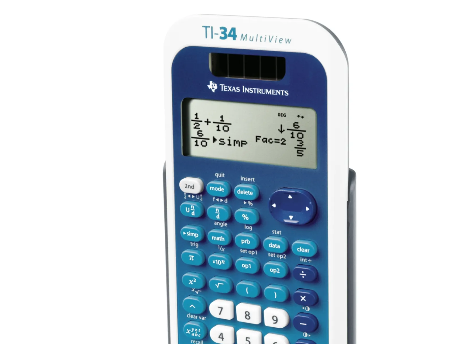 Texas Instruments TI-34, Ficka, Vetenskapsfunktion, 10 siffror, 4 linjer, Batteri/solcell, Blå, Vit