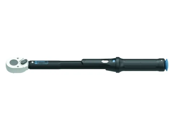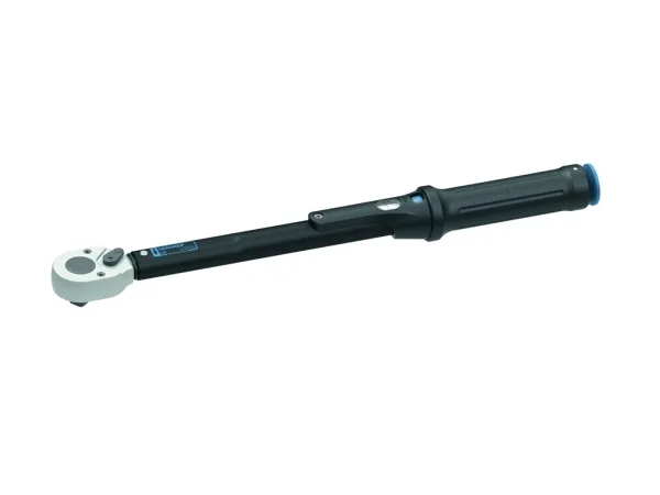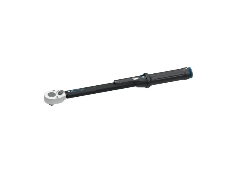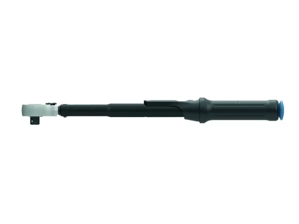 Adjustable, releasing and sturdy tubular torque wrench with integrated lever ratchet and with square drive for industry and the trades Classified according to DIN EN ISO 6789:2017 Type II Class A, with a traceable factory certificate. Calibrated to a permissible deviation of +/- 3 % and better. For controlled directional tightening For controlled directional tightening