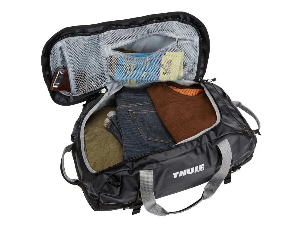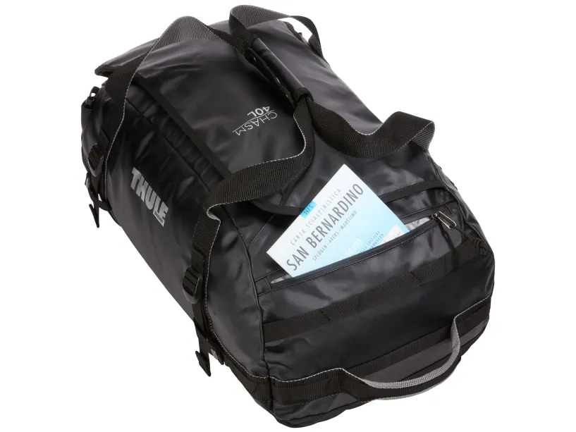 The Thule Chasm duffle bag is designed to meet the demands of active lifestyles, offering versatility and durability. Constructed from tough 840D nylon and TPE laminate, this weatherproof bag ensures that your belongings stay protected against the elements. The spacious 40-liter capacity makes it ideal for travel or sports, while the internal mesh pocket provides an organized space for smaller items. With multiple carrying options, including top and side carry handles, compression straps, and removable backpack straps, the Thule Chasm adapts to your carrying preferences.