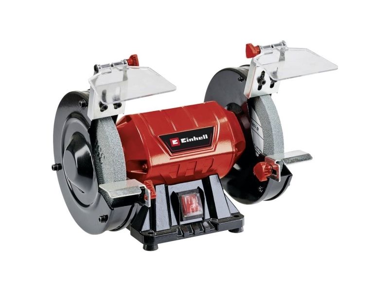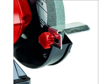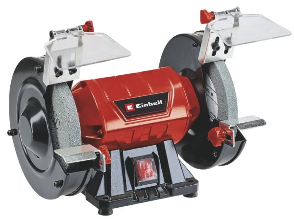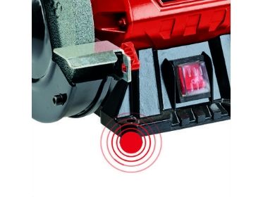 Bänkslip för fast montering på arbetsbord med 2 slipstenar för fin- och grovslipning av knivar, verktyg och mycket mer. Hög säkerhet med justerbara gnistskydd och justerbara anhåll för att stödja materialet.
