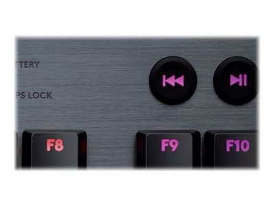 G915 TKL har proffsrankad, trådlös LIGHTSPEED som ger supersnabb prestanda på 1 ms. G915 TKL är också fullt funktionellt när det är anslutet via USB, så att du kan ladda och spela samtidigt.