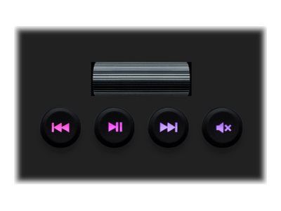 Inbyggda, lättåtkomliga mediekontroller. Dedikerade reglage justerar snabbt volymen, spela upp/pausa och hoppa över musik eller videor och ljud av direkt.