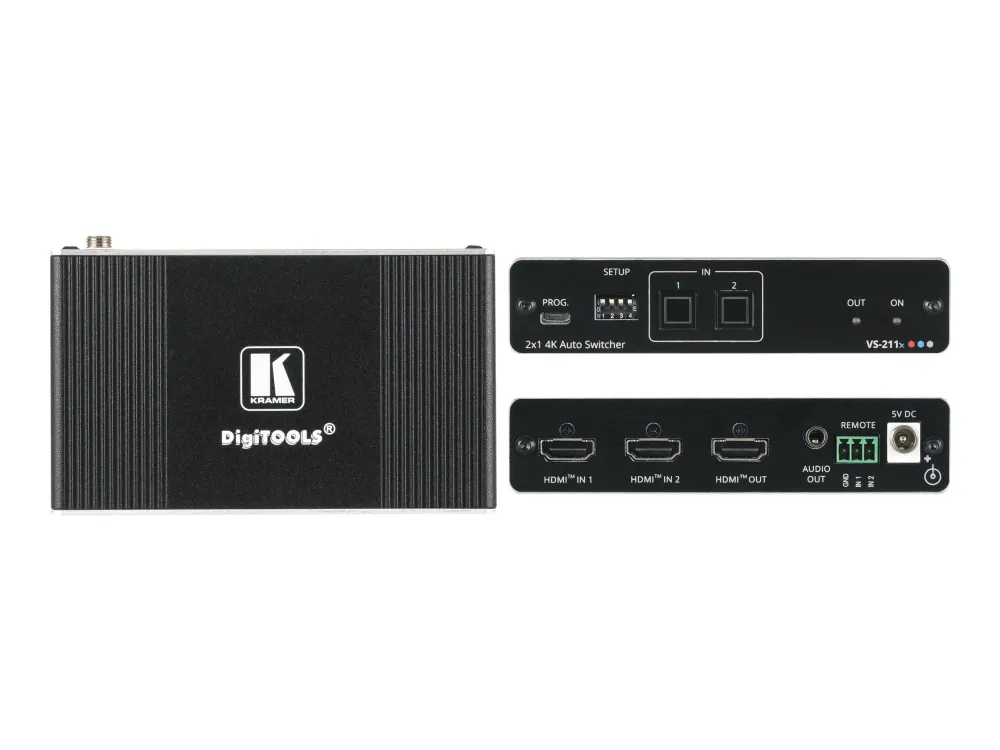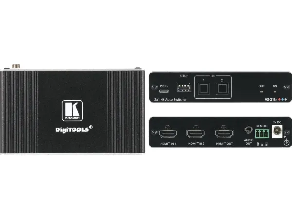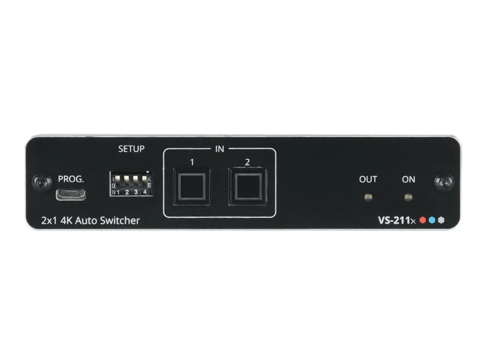 VS-211X är en högpresterande 2x1 automatisk omkopplare för 4K HDR, HDMI-videosignaler. Med alternativen prioritet och senast anslutna växlar den automatiskt enligt det valda växlingsschemat baserat på aktiv detektering av videosignaler.