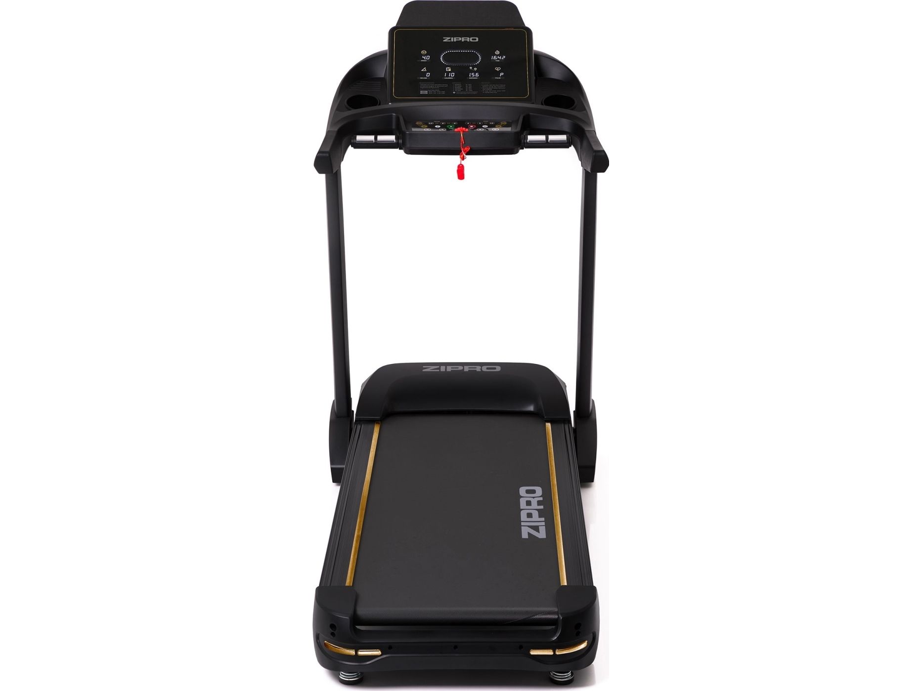 Zipro Pacemaker löpband har en massiv konstruktion som ger stabilitet under träning och ett brett löpband som gör det möjligt för personer med olika fysiska förutsättningar och löpteknik att träna bekvämt. Det säkerhetssystem som gör det möjligt att fälla ihop löpbandet och transporthjulen gör att du kan använda löpbandet bekvämt även i begränsade utrymmen. Löpbandet drivs av en motor som möjliggör en maxhastighet på 22 km/h, vilket gör att du kan gå, jogga, springa och spurta.