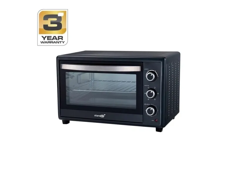 Brand- Standart. Model- KR-103L-46(C). Width- 58.1 cm. Depth- 37.6 cm. Height- 41 cm. Weight- 10.78 kg. Volume- 45 l. Colour- Black, Silver. Power- 1800 W. Operating temperature- 90 - 230°C. Control- Mechanical. With lighting- No. Number of functions- 3. Functions- The switch selects various heating functions. Screen- No. Timer- Yes. Automatic shutdown- Yes. Thermostat- No. Overheat protection- Yes. Mandatory warranty- 24 mo. Additional information- 60 minutes timer Non-stick interior coating. 4 stainless steel heating elements. Double door glass. Stainless steel handle..