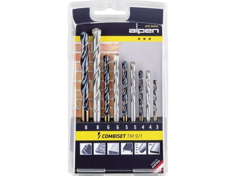 Alpen 0000802122100 TM 9/1 9 stycken universell borrsats