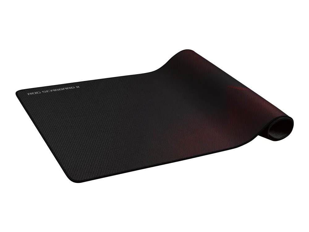 ROG Scabbard II sets the stage for your most epic fights and stunning victories. This extended gaming mouse pad offers ample space for your keyboard, mouse and other gaming gear, making it an ideal staging area before you go into battle. It is made out of durable fabric with a military-grade nano-coating that repels water, oil and dust, giving you an optimal mouse gliding surface. Featuring anti-fray, flat-stitched edges and a non-slip rubber base, ROG Scabbard II is your perfect gaming ally.
