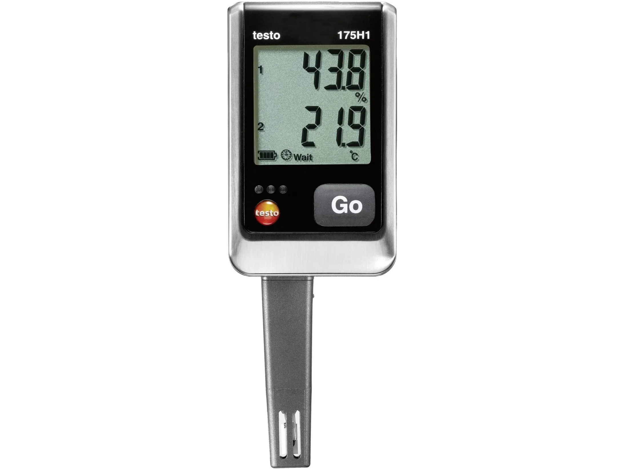 Temperatur- og fugtigheds-datalogger testo 175 H1Langtidsovervågning takket være større hukommelse · Let aflæsning takket være større display · Enkel batteriudskiftning · Enkel udlæsning med standardiseret USB-kabel eller SD-kort · Mini-USB-tilslutning på enhed · SD-kortport. Dataloggeren Testo 175 H1 muliggør professionel langtidsovervågning af temperatur og fugtighed i arbejds- og lagerrum. Samtidig har dataloggeren et mini-USB-stik og en SD-kortplads, der gør det hurtigt og let at overføre dataene. Den store hukommelse og driften ved hjælp af almindelige batterier er to yderligere fordele. Desuden imponerer Testo 175 H1 med hurtig reaktionstid i kraft af den eksterne fugtsensor.